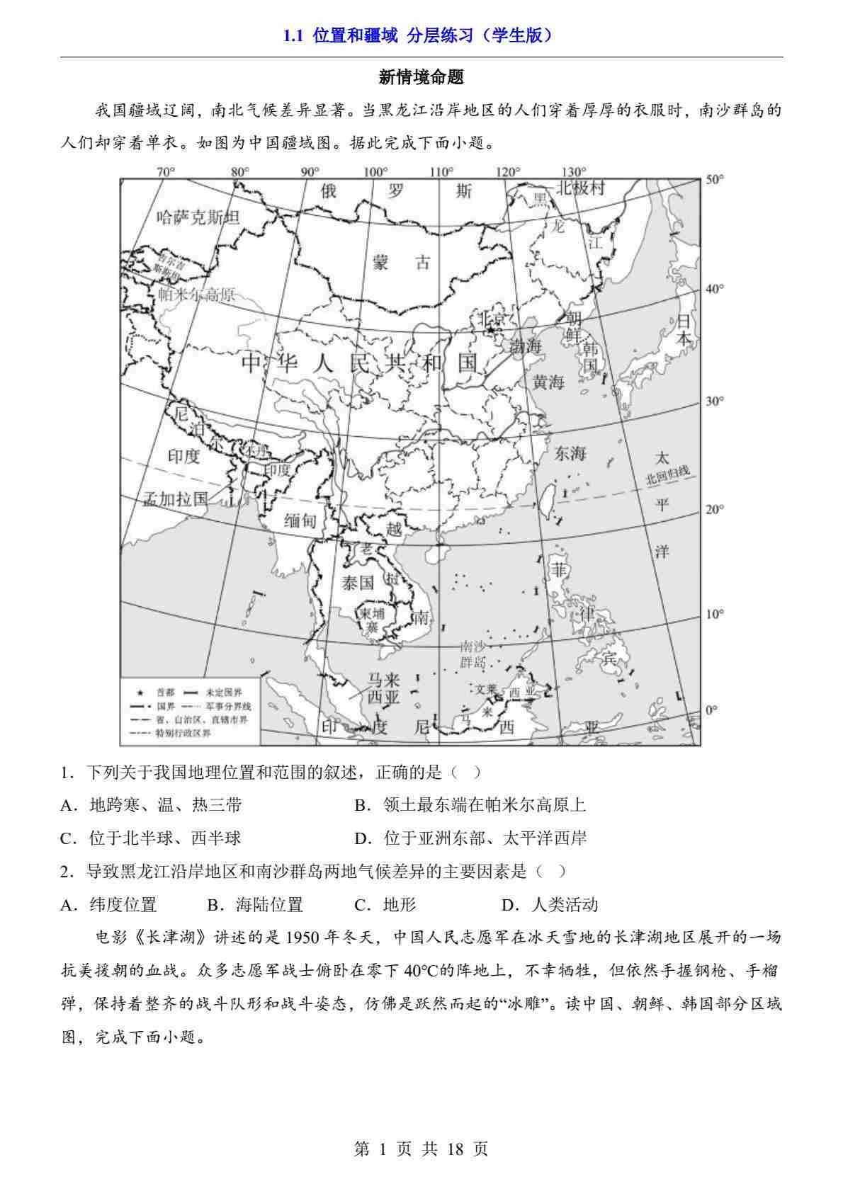 1.1 位置和疆域(分层练习)