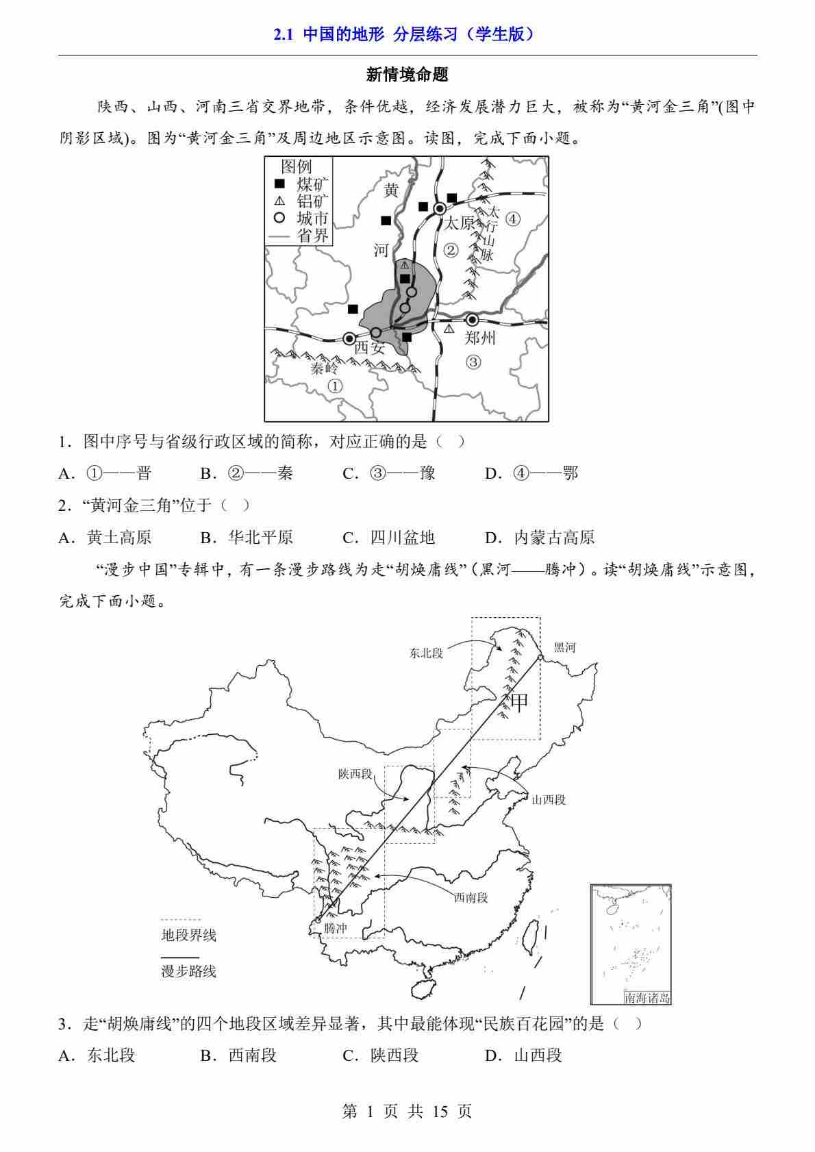 2.1 中国的地形(分层练习)