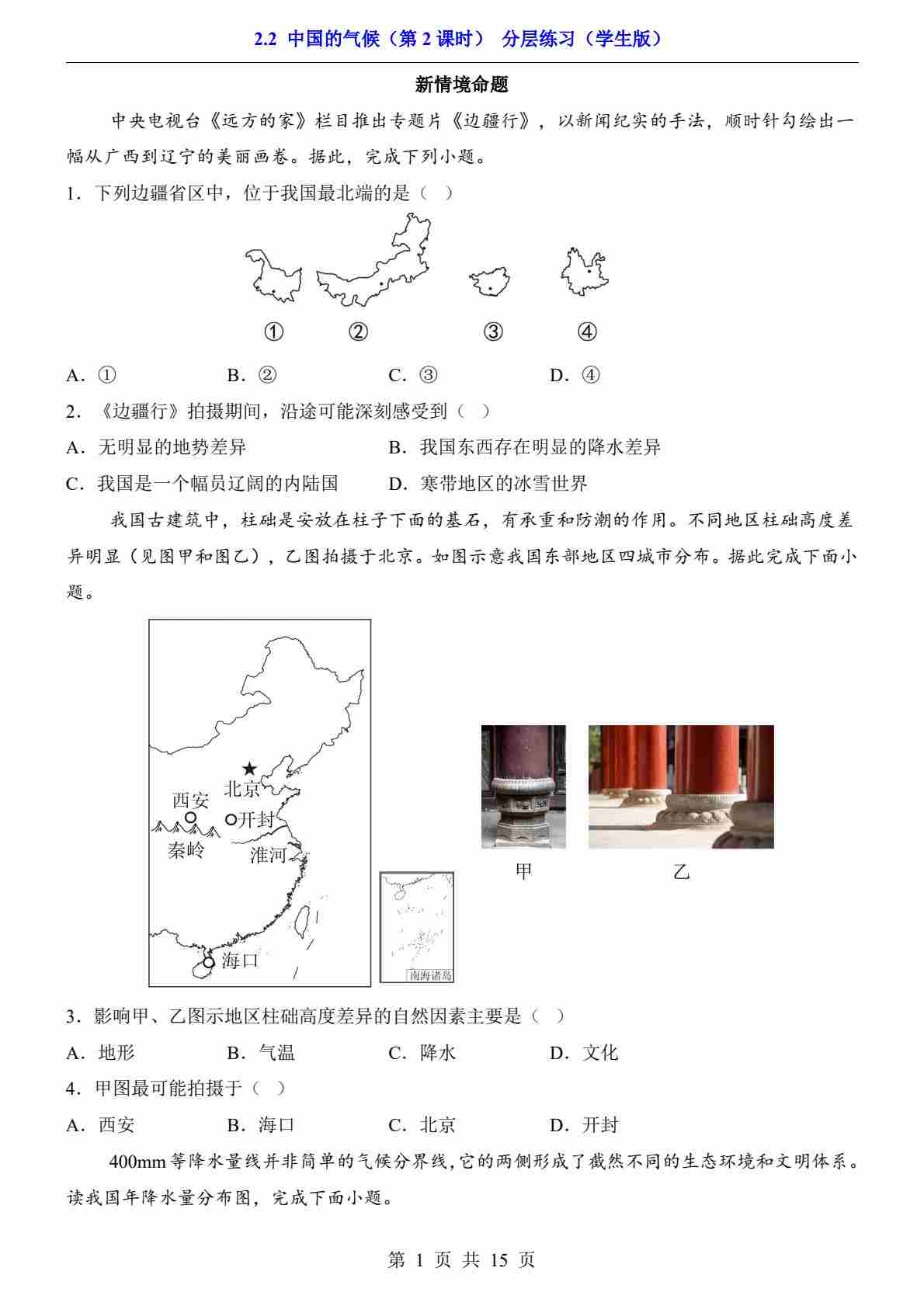 2.2 中国的气候 第2课时(分层练习)