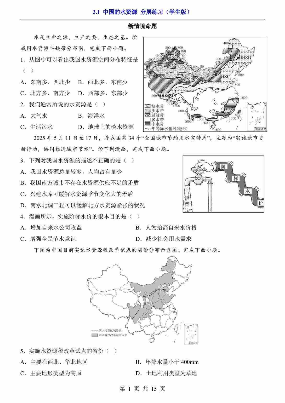 3.1 中国的水资源(分层练习)