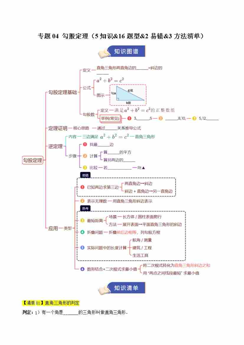 专题04 勾股定理(期末复习讲义4知识点13题型)(原卷版)