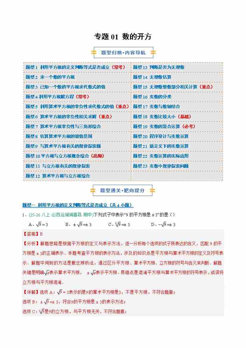 专题01 数的开方(期末专项训练23题型)(教师版)