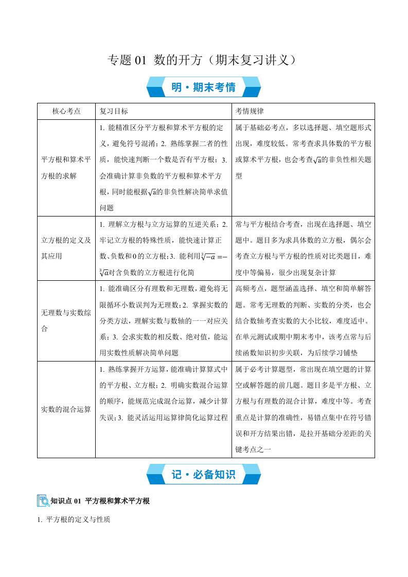 专题01 数的开方(期末复习讲义4知识点18题型)(学生版)(1)
