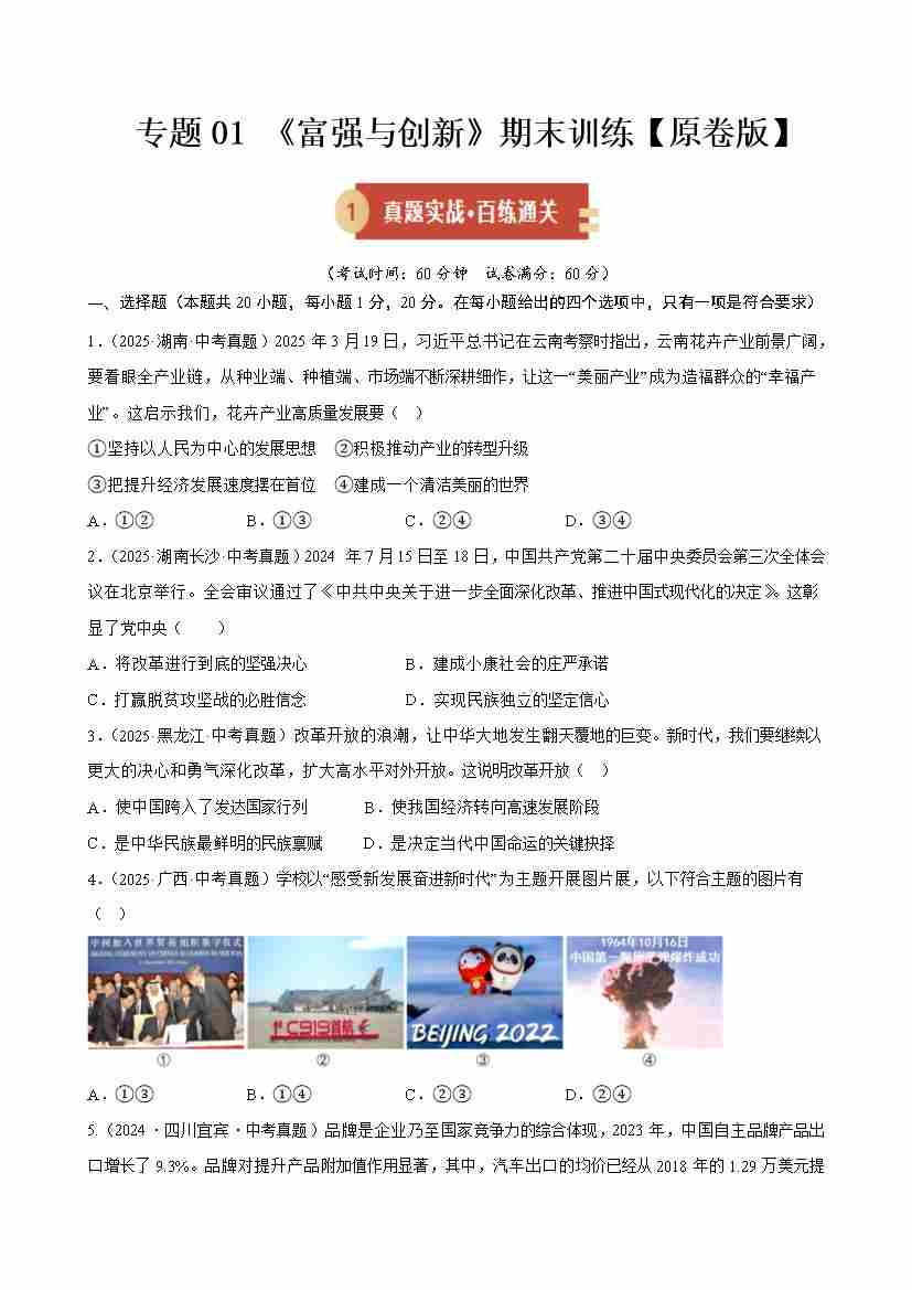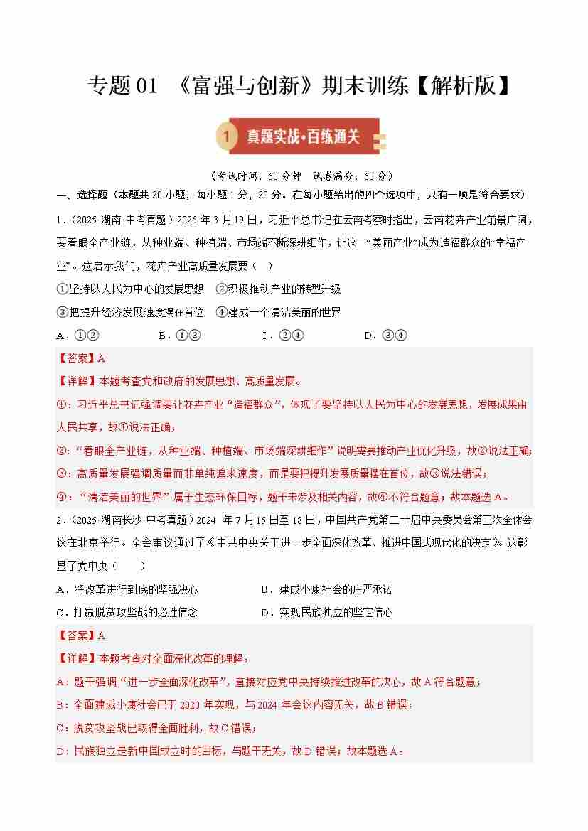 第一单元 富强与创新(期末专项训练)(学生版)