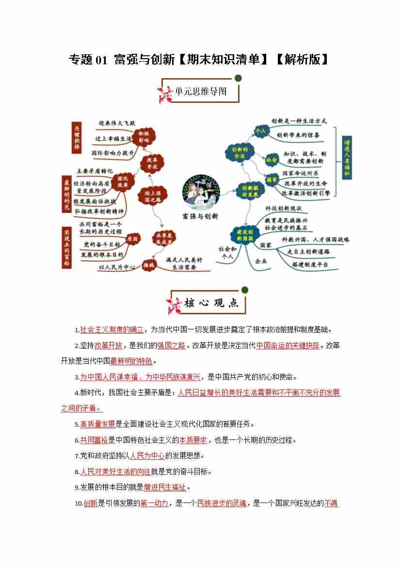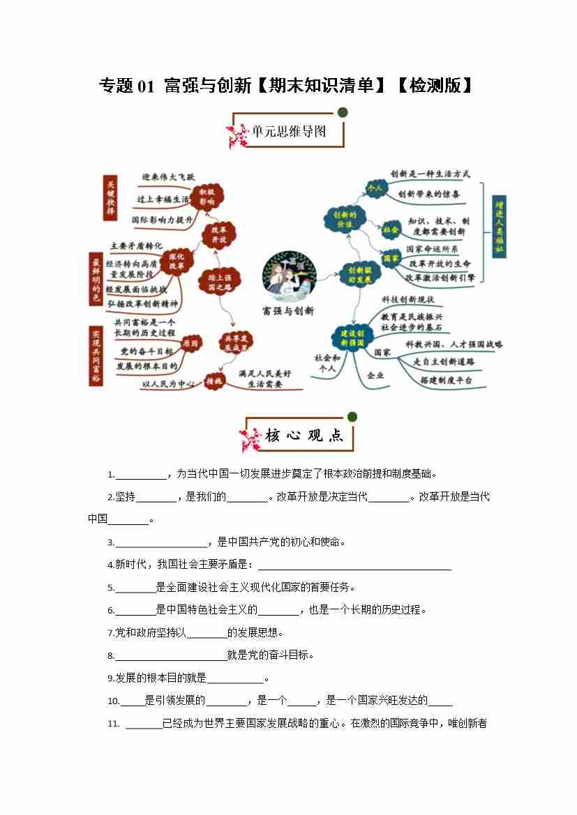 第一单元 富强与创新(期末复习清单)(检测版)