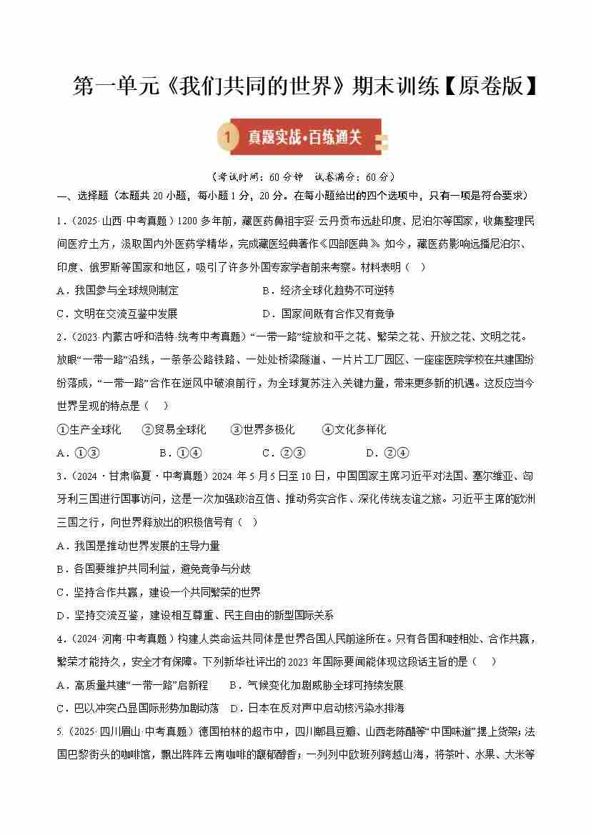 第一单元 我们共同的世界(期末专项训练)(原卷版)