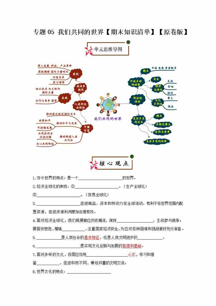 第一单元 我们共同的世界(期末复习讲义)(原卷版)