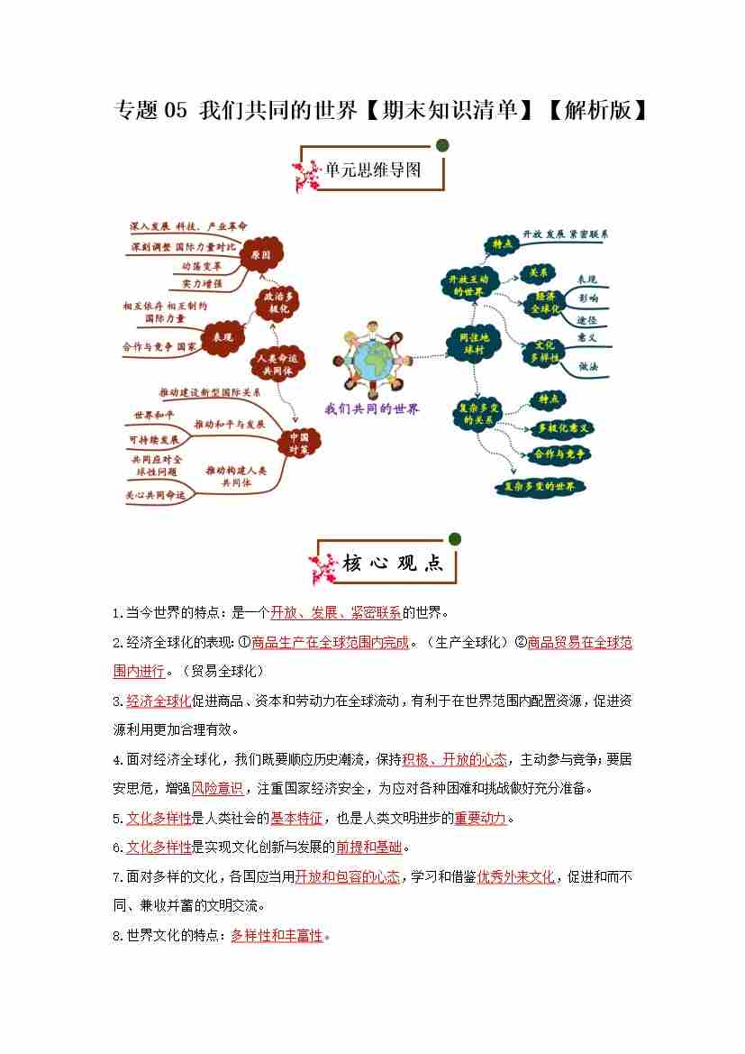第一单元 我们共同的世界(期末复习考点清单)(解析版)