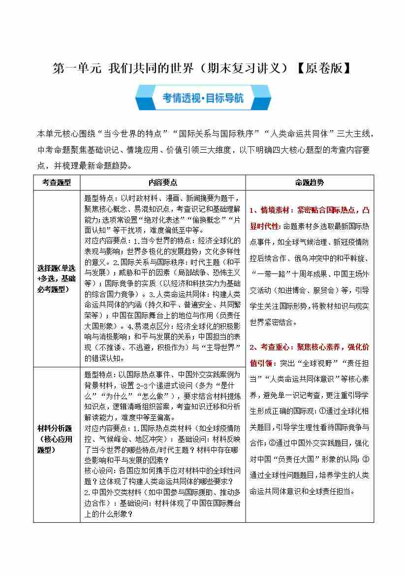 第一单元 我们共同的世界(期末复习讲义)(解析版)