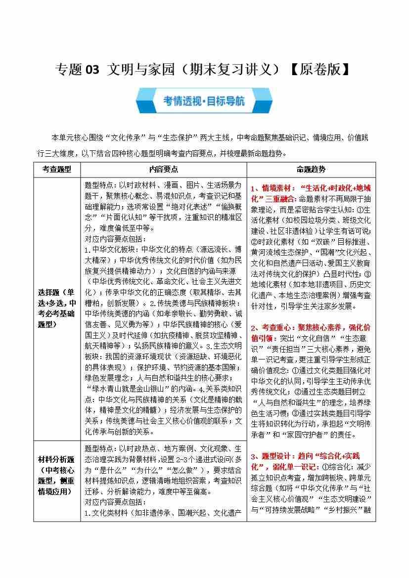 第三单元 文明与家园(期末复习讲义)(原卷版)