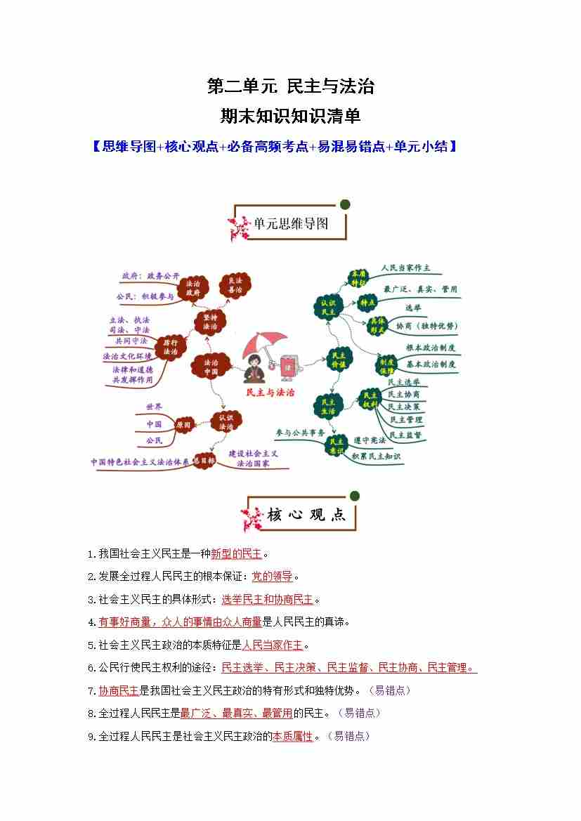 第二单元 民主与法治(期末复习讲义)(解析版)