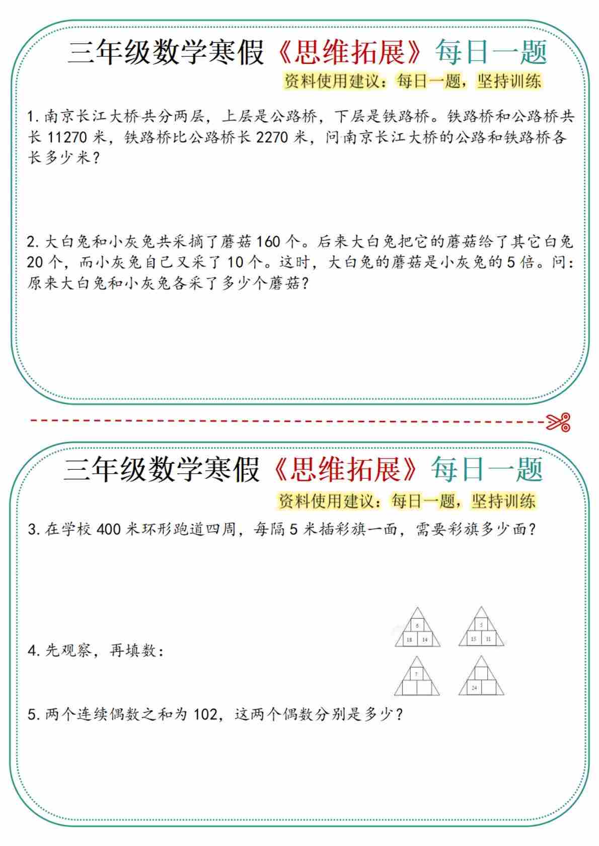 【26年三年级数学寒假作业每日一练30天30页