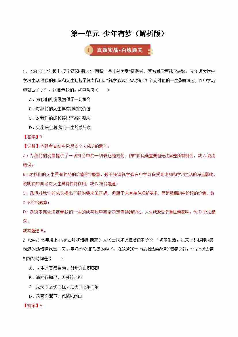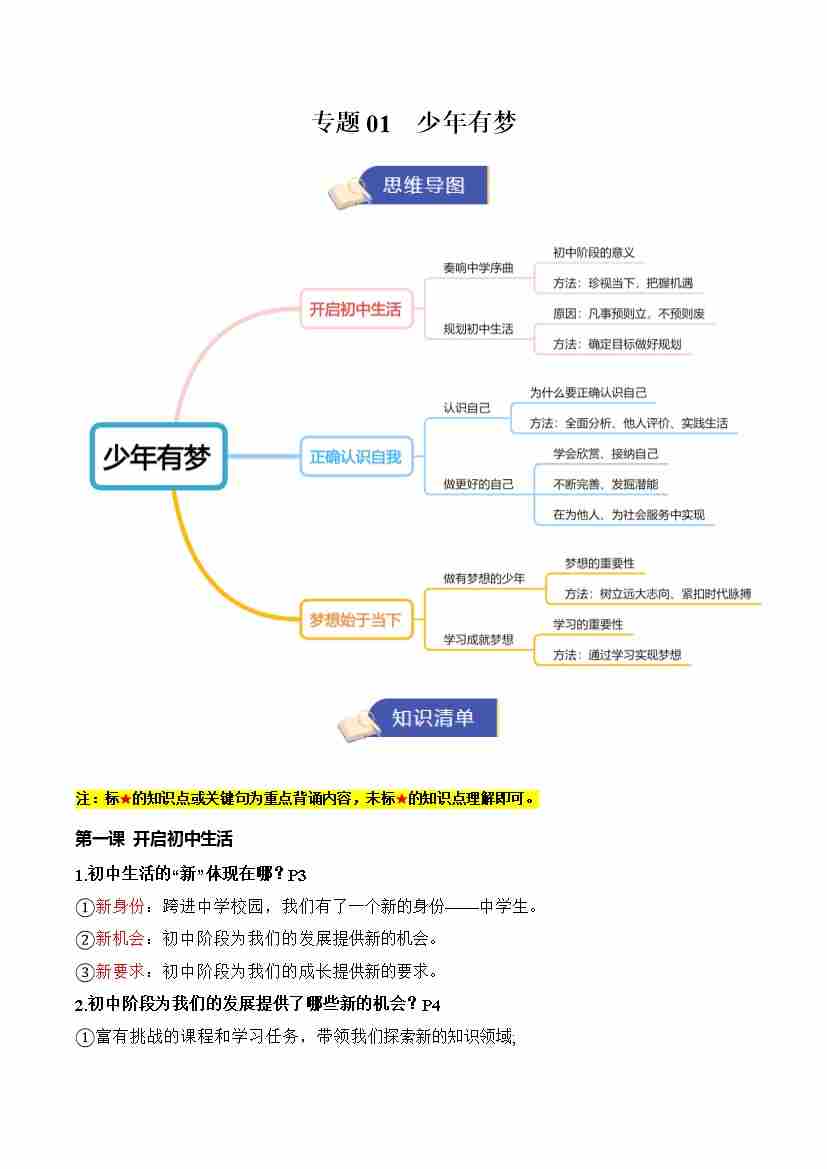 第一单元 少年有梦(期末复习讲义) (解析版)