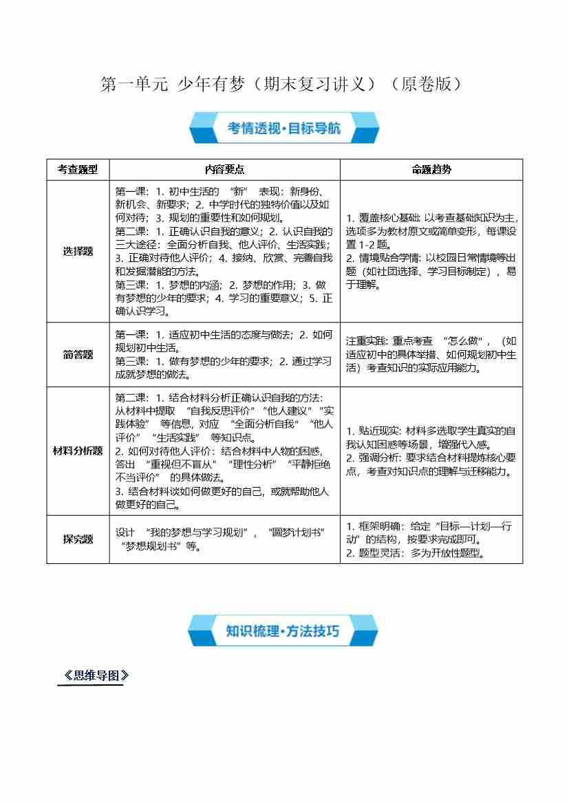 第一单元 少年有梦(期末复习讲义) (原卷版)