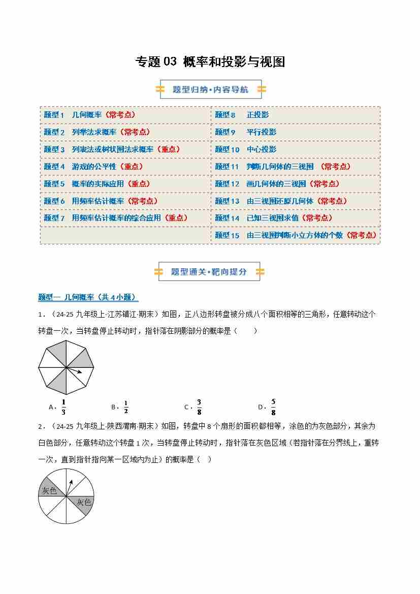 专题03 概率和投影与视图(期末复习专项训练)(原卷版)
