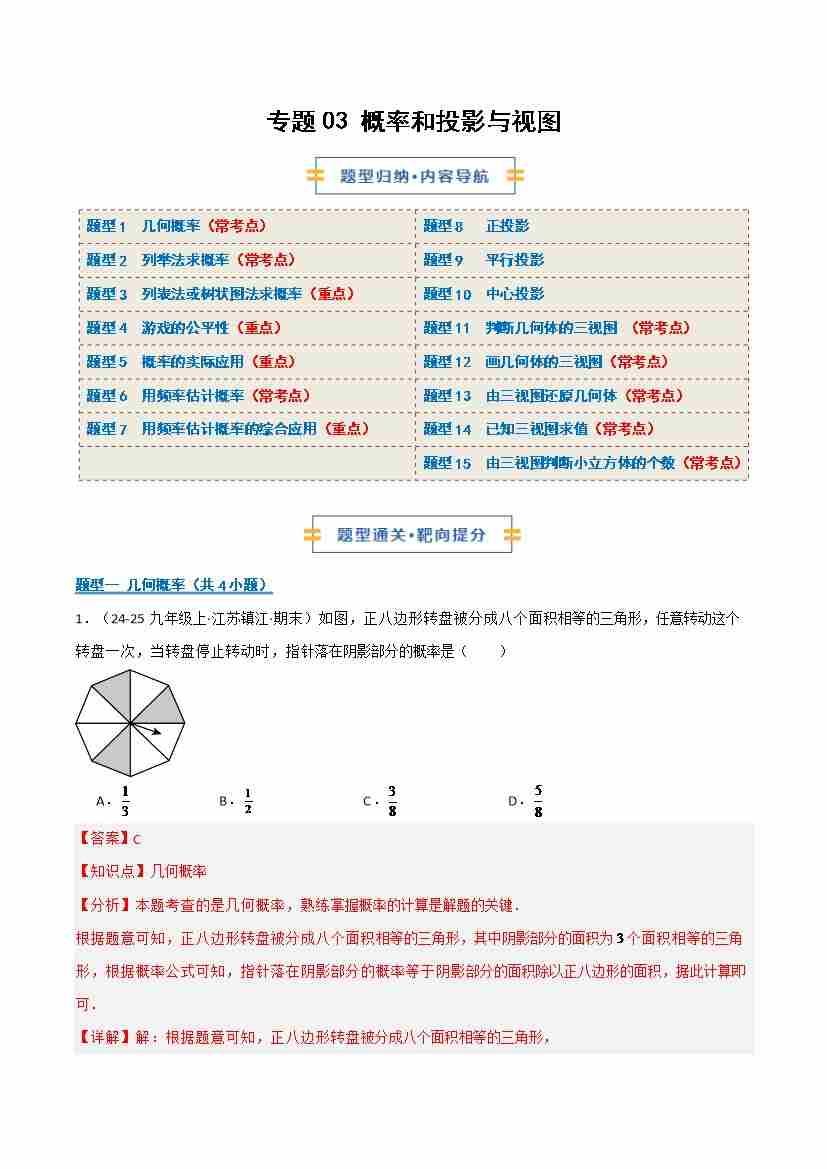 专题03 概率和投影与视图(期末复习专项训练)(解析版)