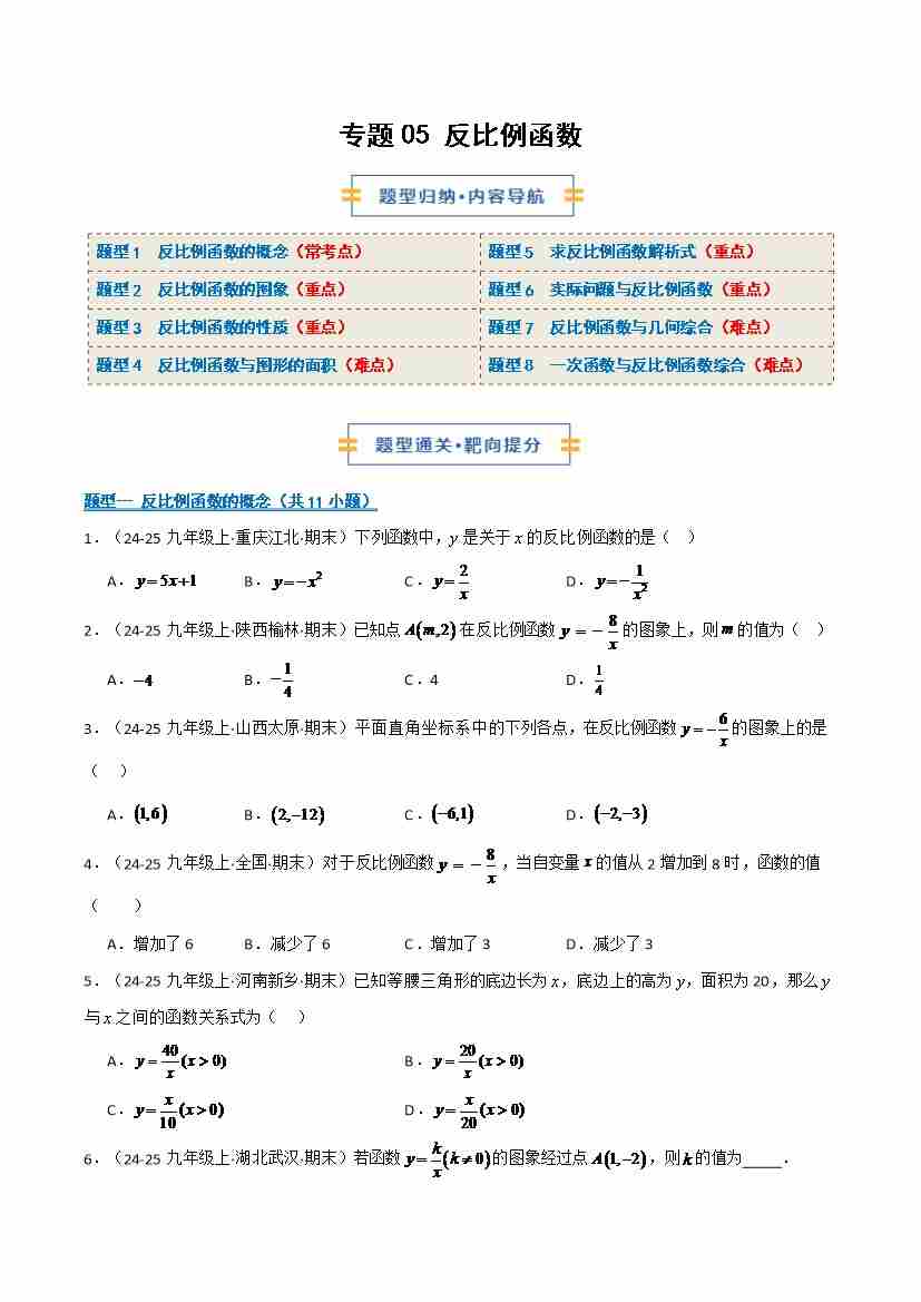 专题05 反比例函数 (期末复习专项训练)(学生版)