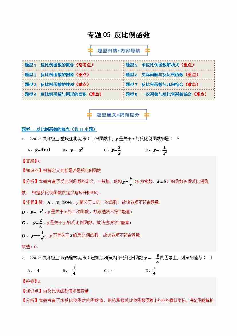 专题05 反比例函数 (期末复习专项训练)(教师版)