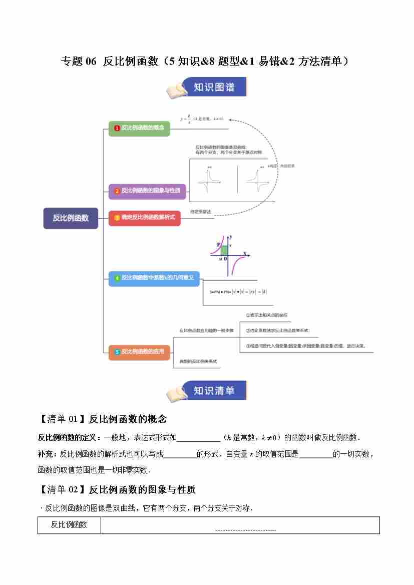 专题06 反比例函数(期末复习知识清单)(原卷版)