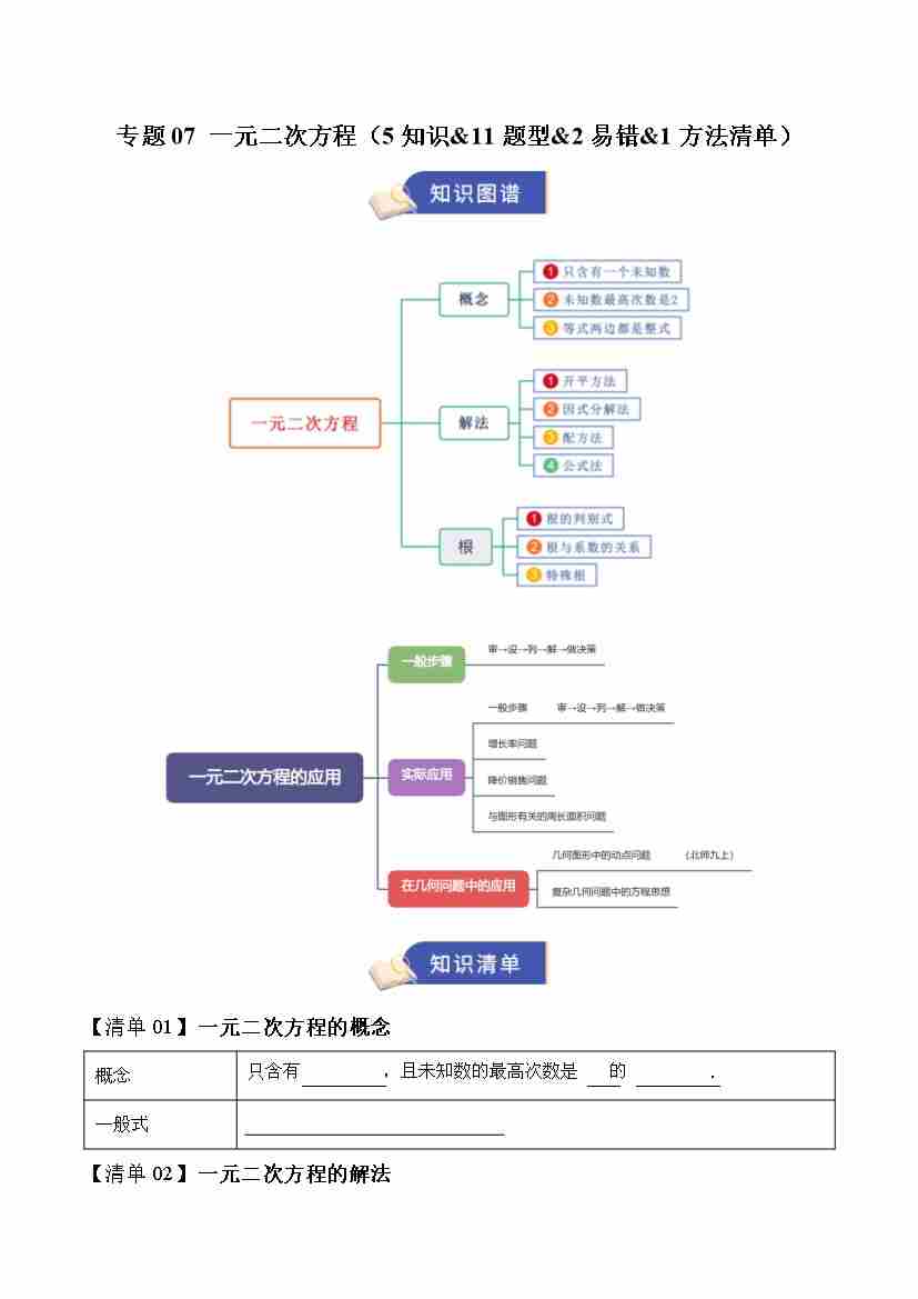专题07 一元二次方程(期末复习知识清单)(原卷版)
