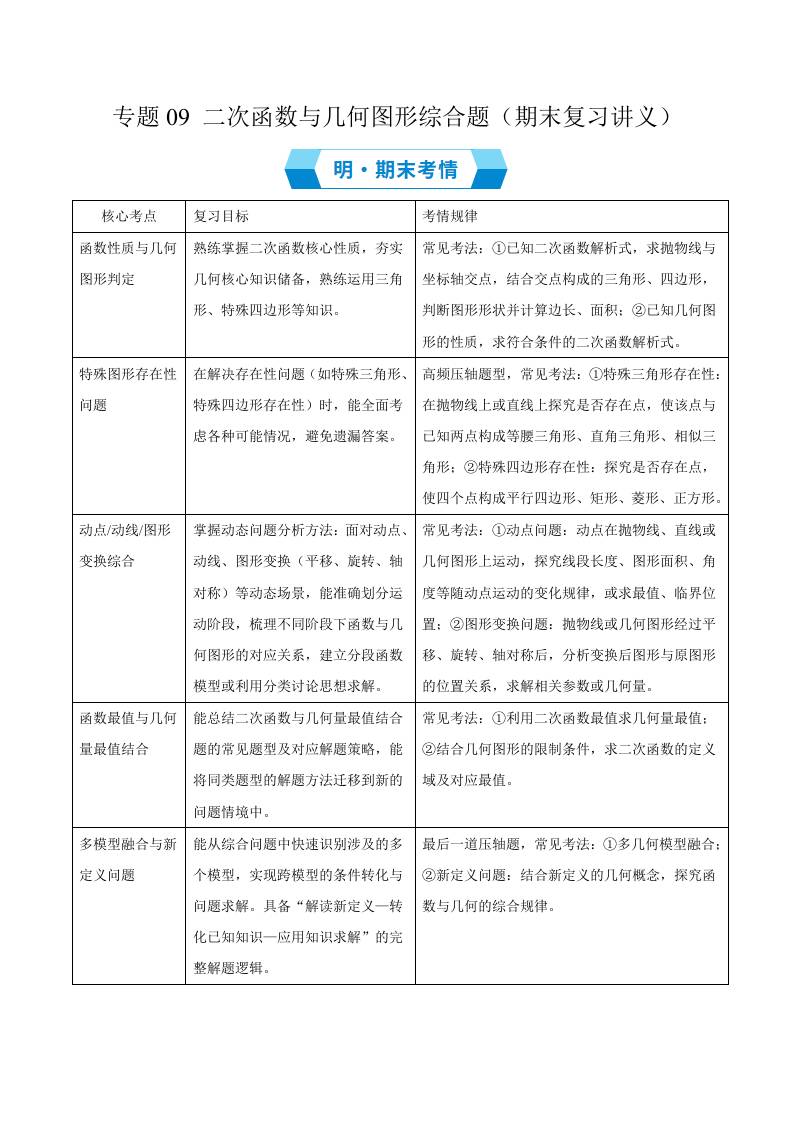 专题09 二次函数与几何图形综合题(知识必备5大重难题型过关验收)(期末复习讲义)解析版