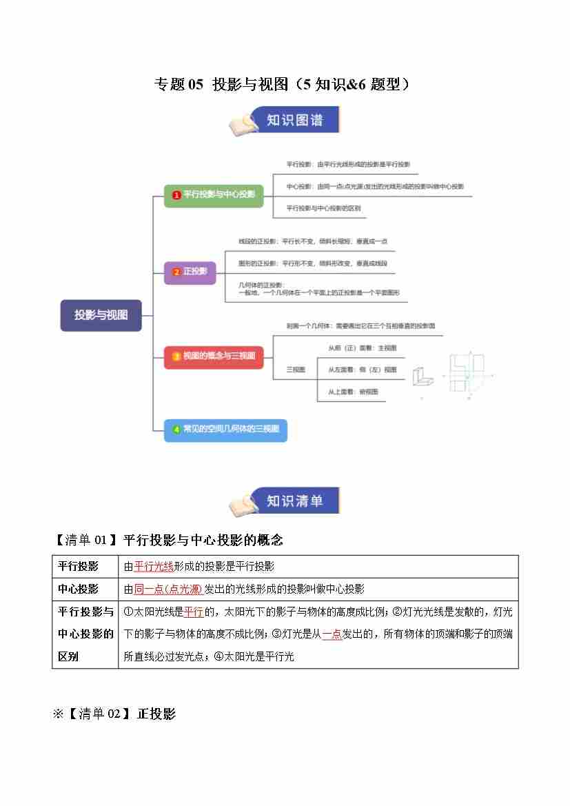 专题05 投影与视图 (期末复习知识清单)(解析版)