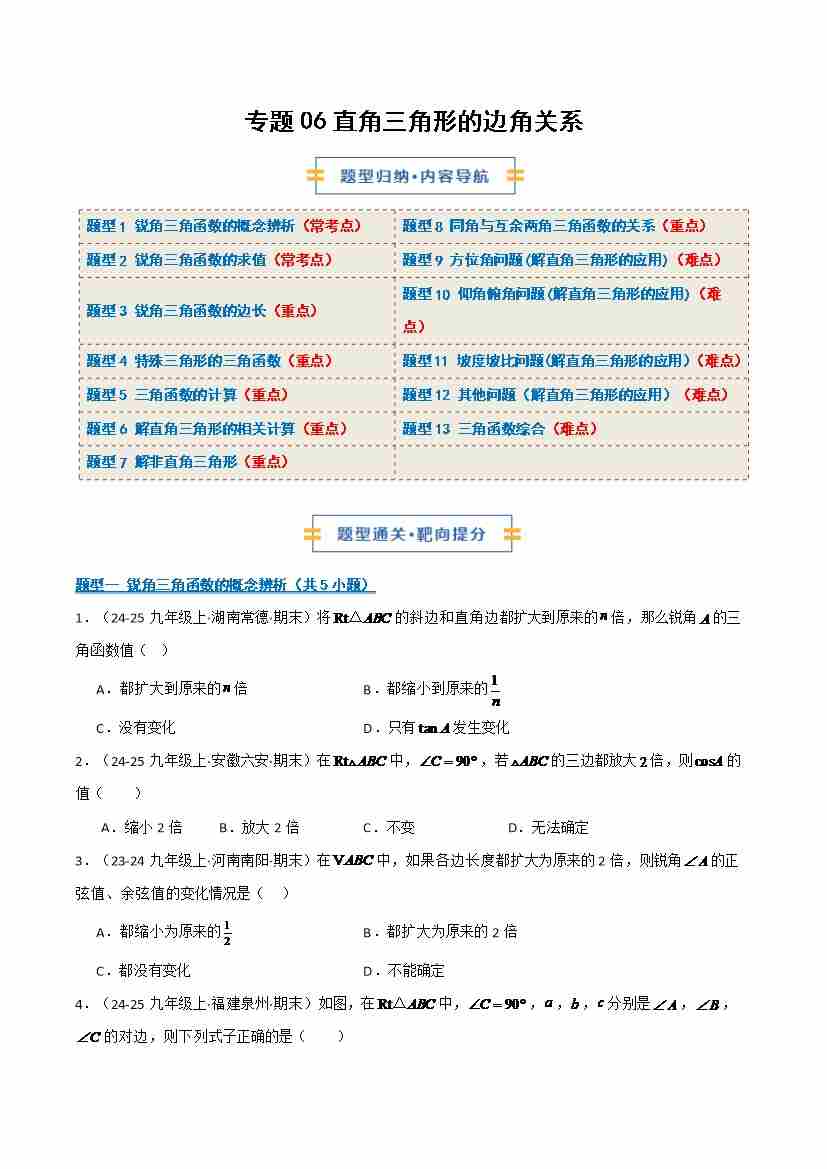 专题06 直角三角形的边角关系(期末复习专项训练)(学生版)