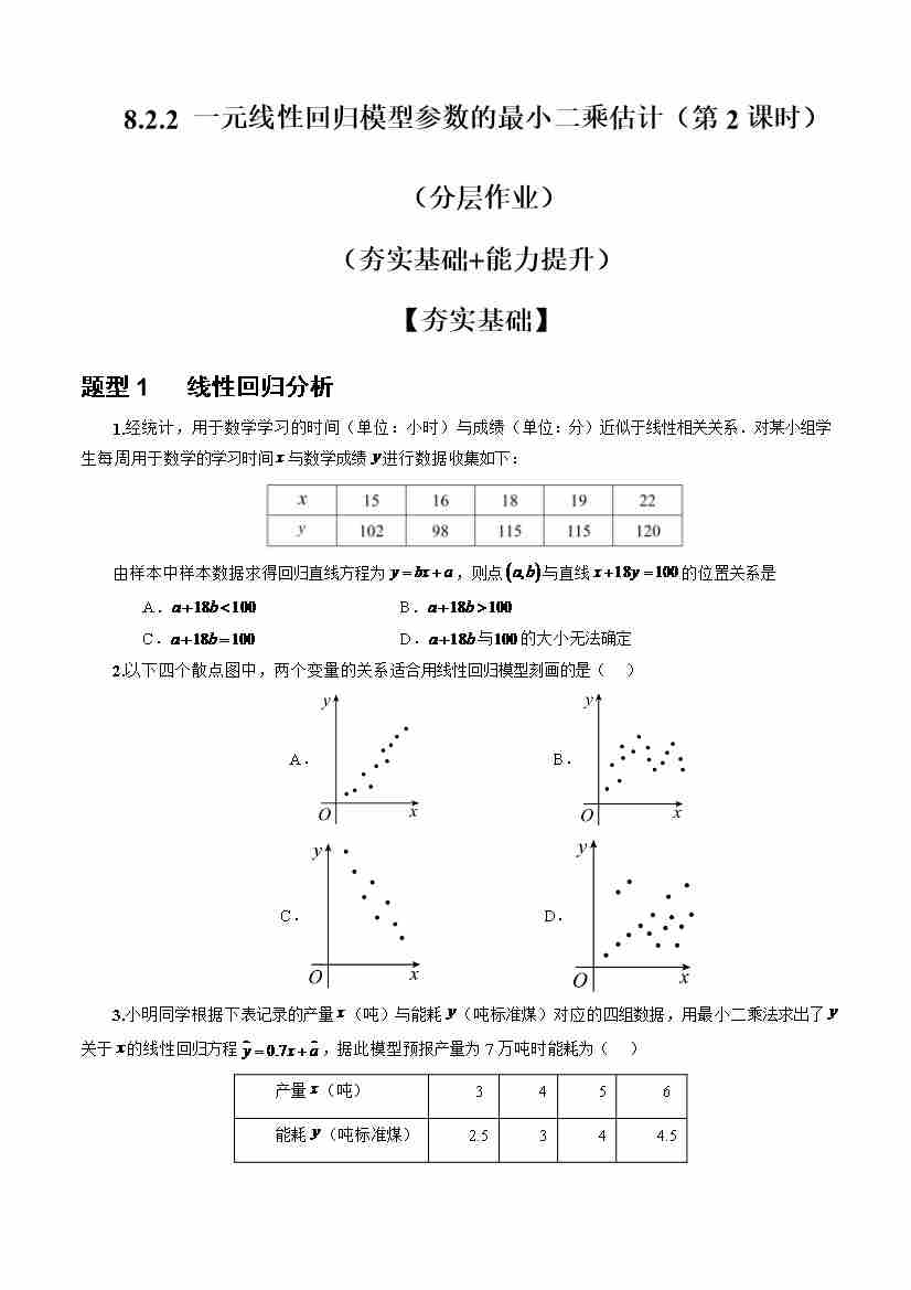 8.2.2 一元线性回归模型参数的最小二乘估计 (第2课时) (分层作业)(原卷版)