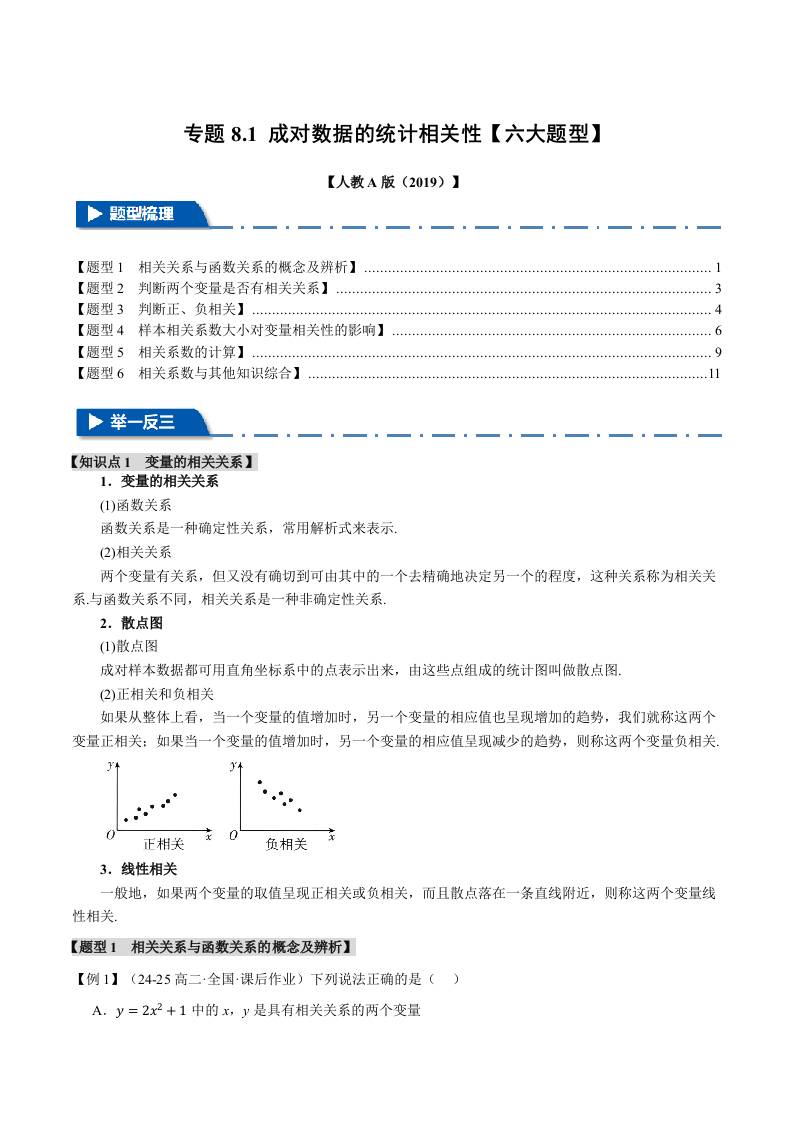 专题8.1 成对数据的统计相关性(六大题型)(举一反三)(人教A版2019选择性必修第三册)(学生版)