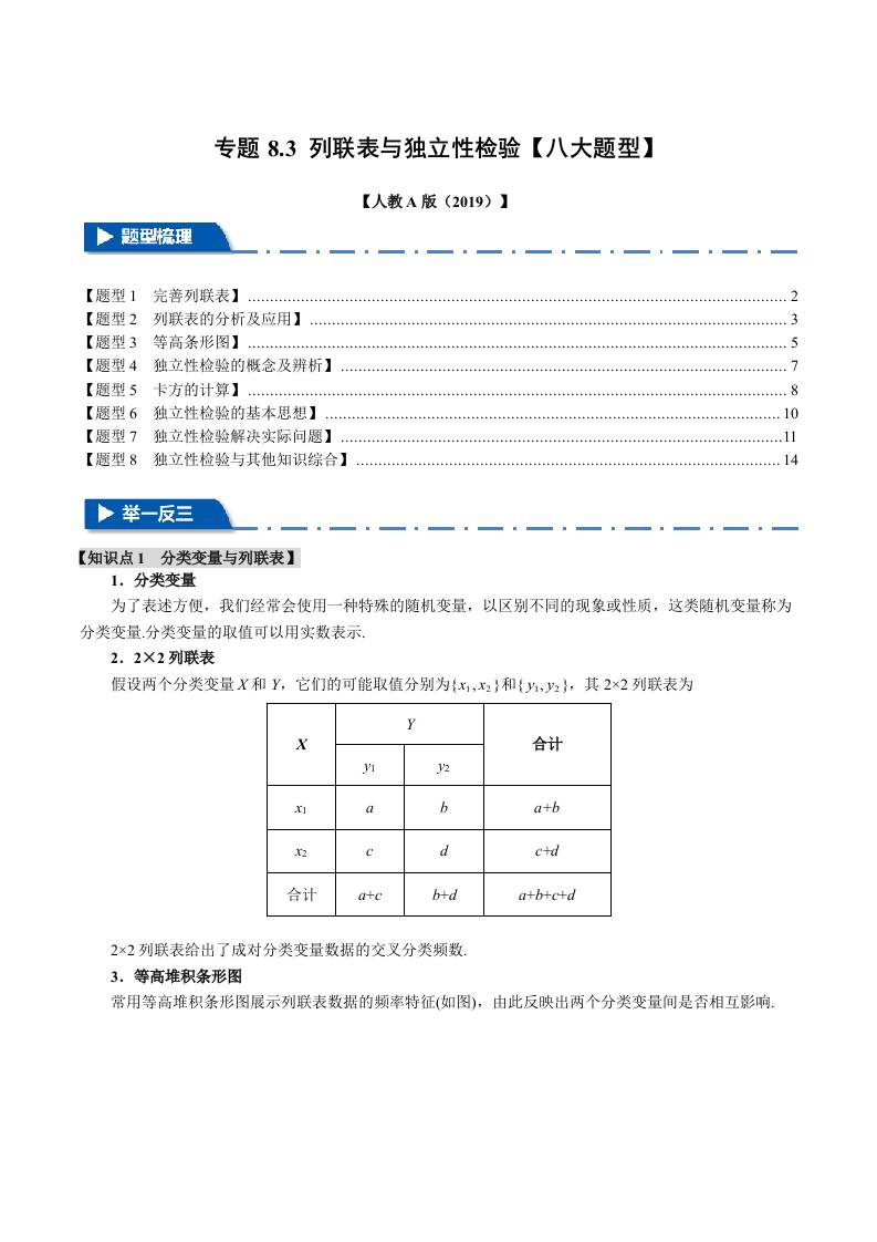 专题8.3 列联表与独立性检验(八大题型)(举一反三)(人教a版2019选择性必修第三册)(学生版)