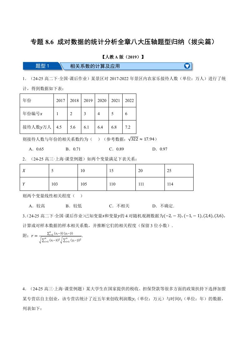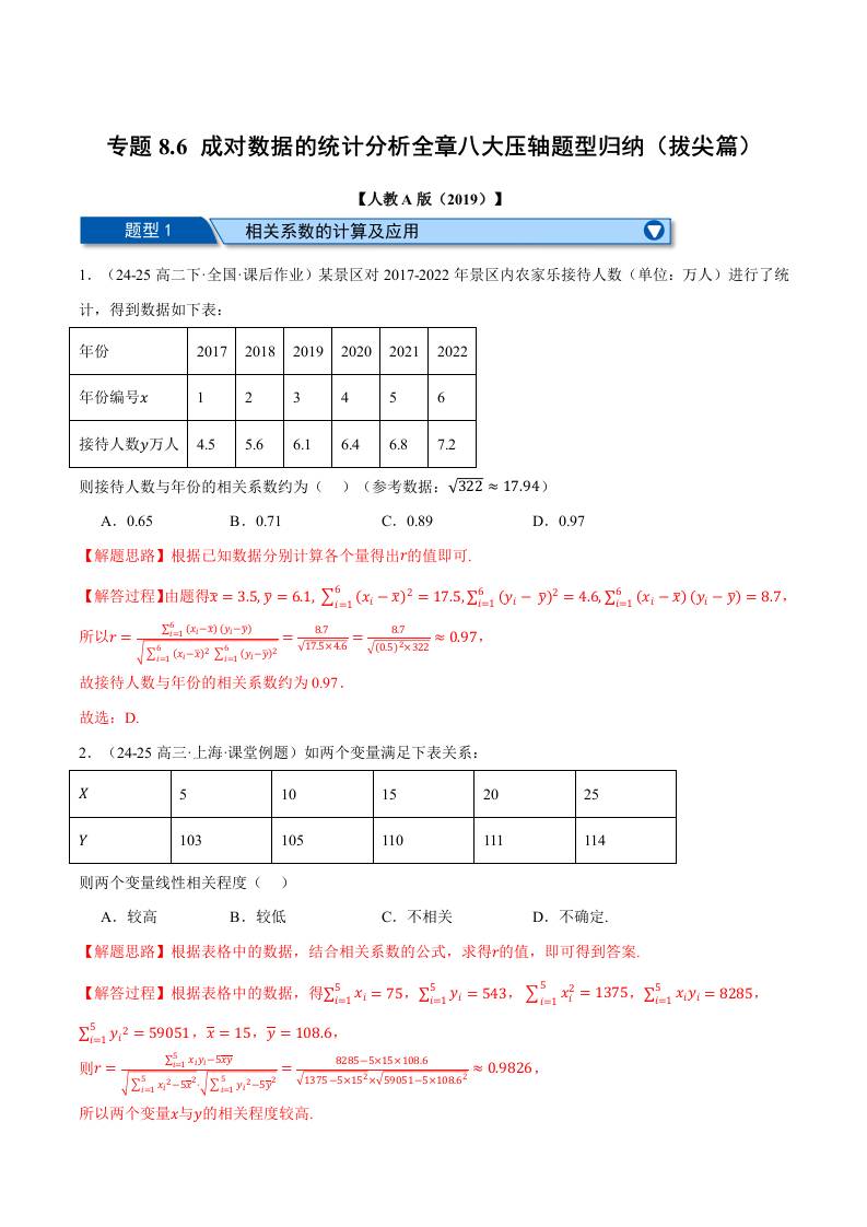 专题8.6 成对数据的统计分析全章八大压轴题型归纳(拔尖篇)(举一反三)(人教A版2019选择性必修第三册)(学生版)