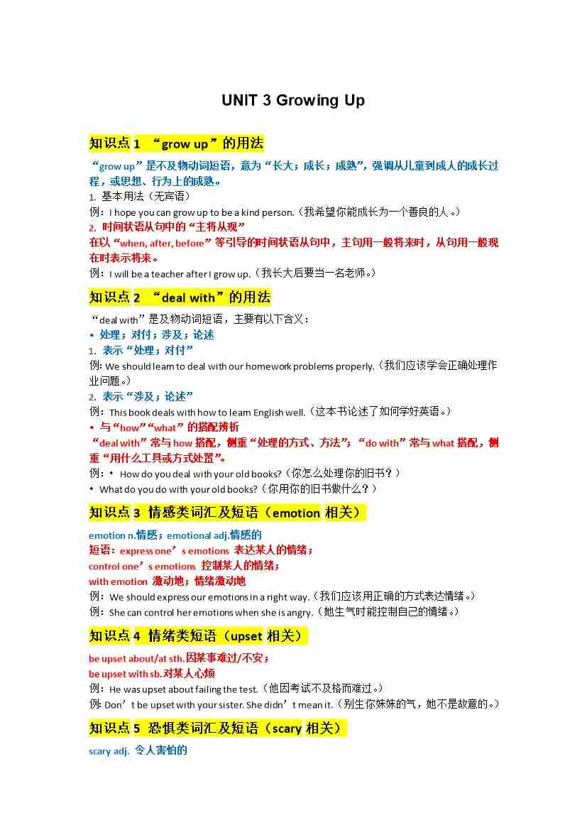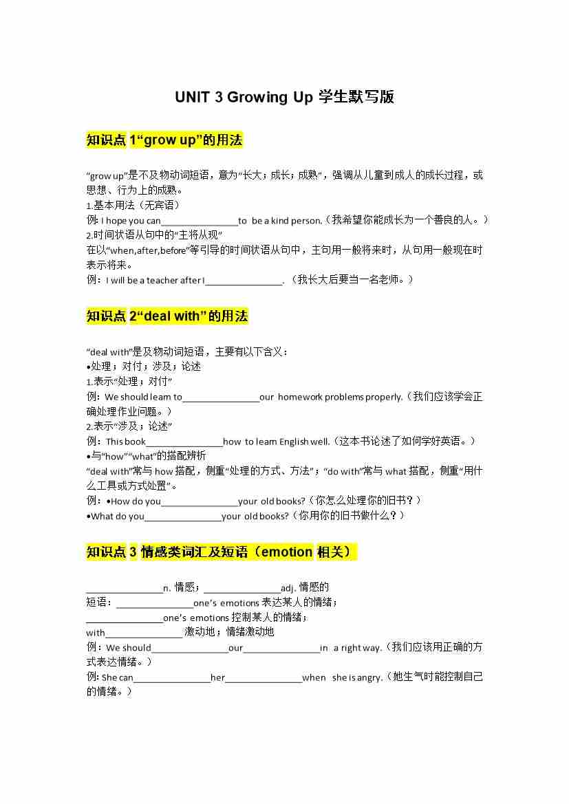 UNIT 3 Growing Up学生默写版