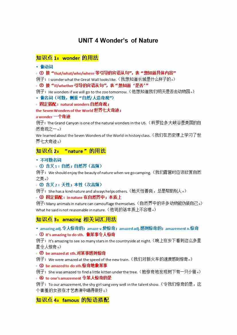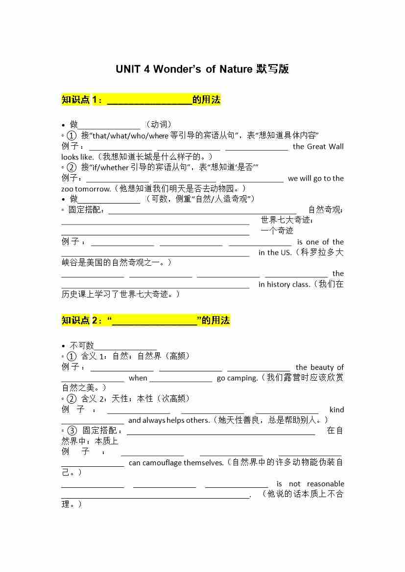 UNIT 4 Wonder默写版