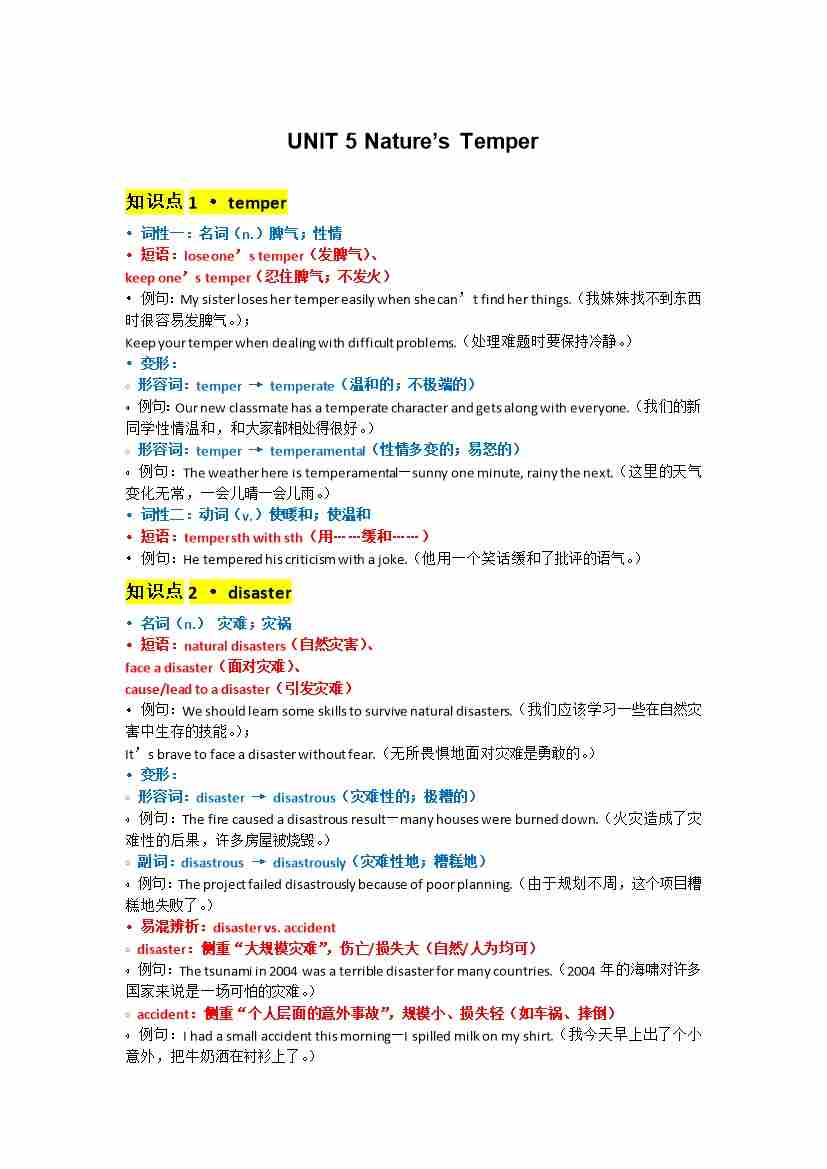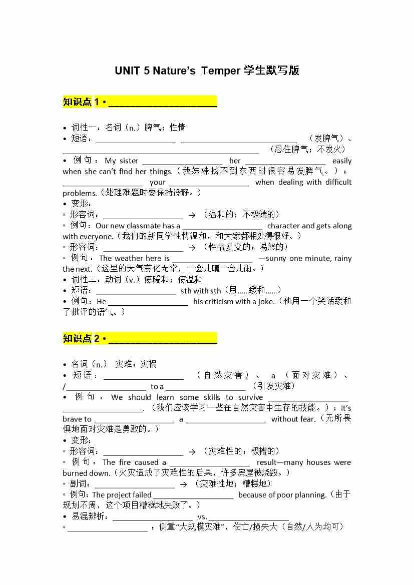 UNIT 5 Nature.默写版docx