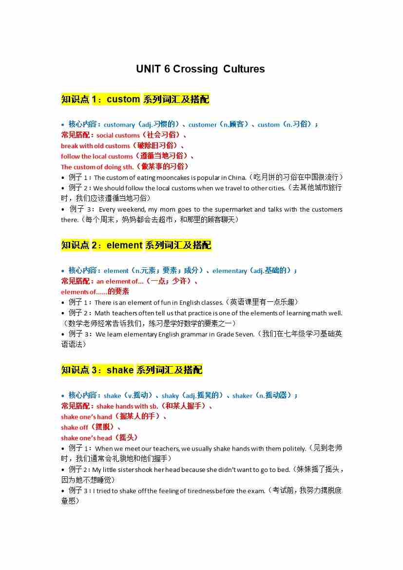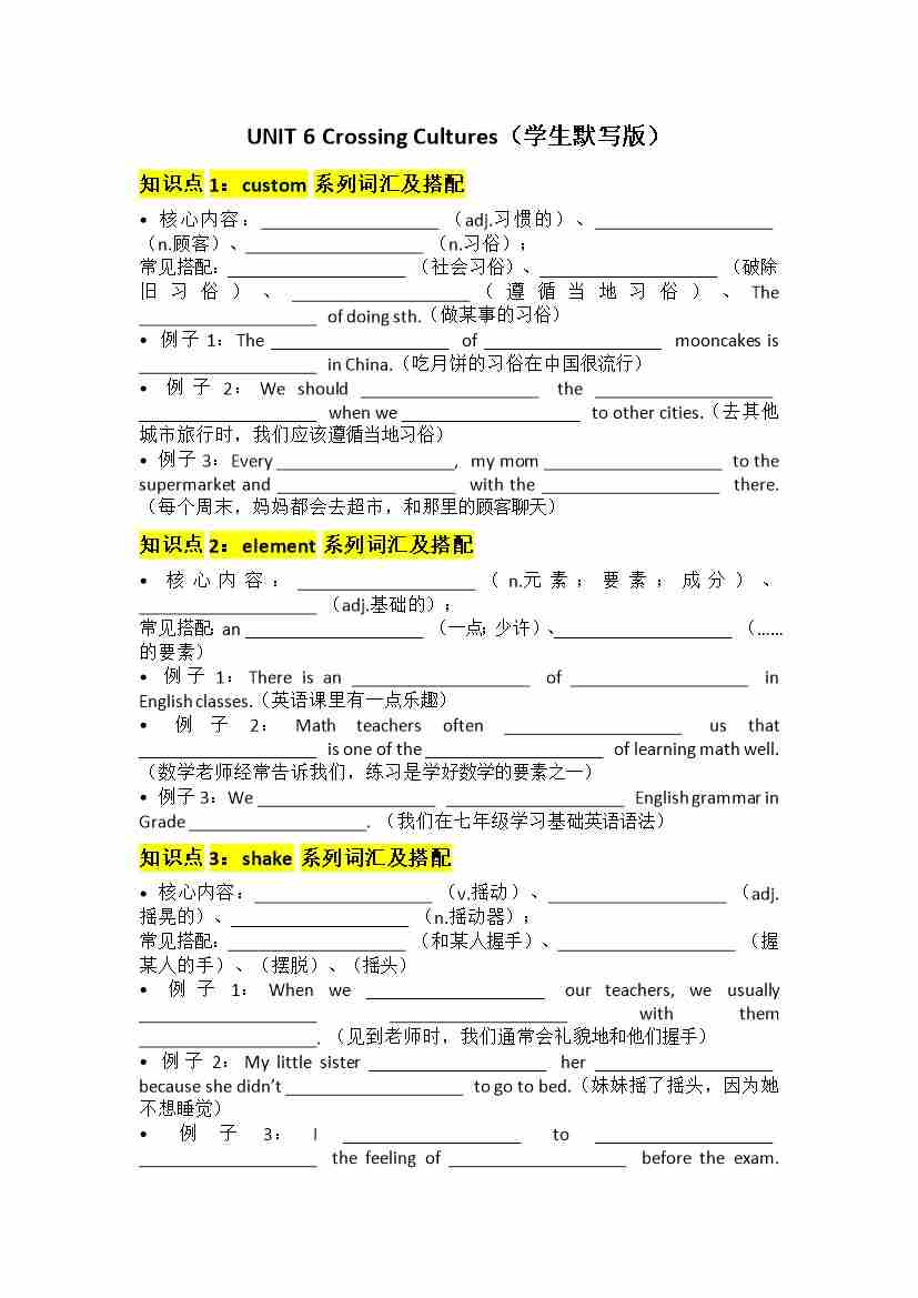 UNIT 6 Crossing Cultures默写版