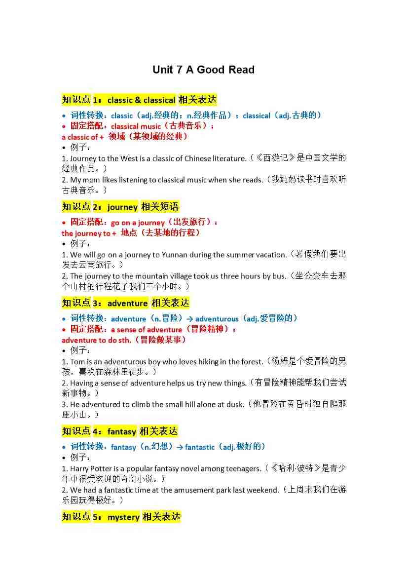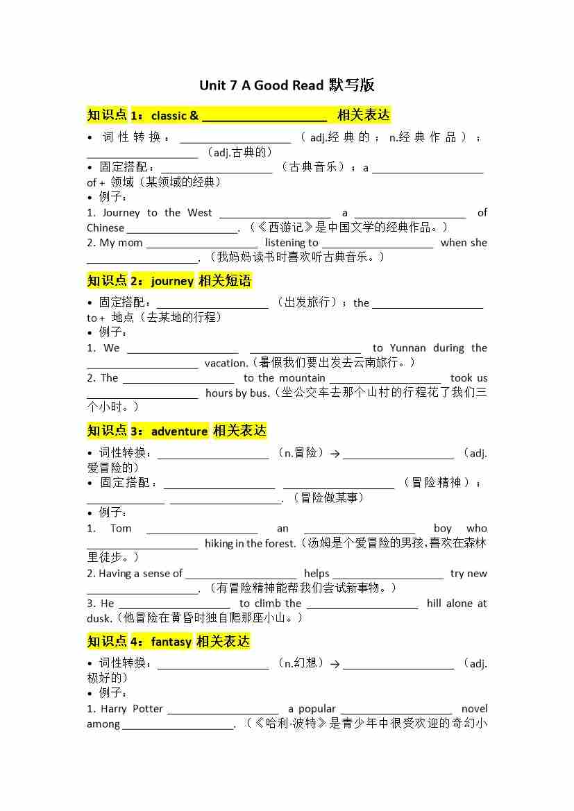 Unit 7 A Good Read默写版