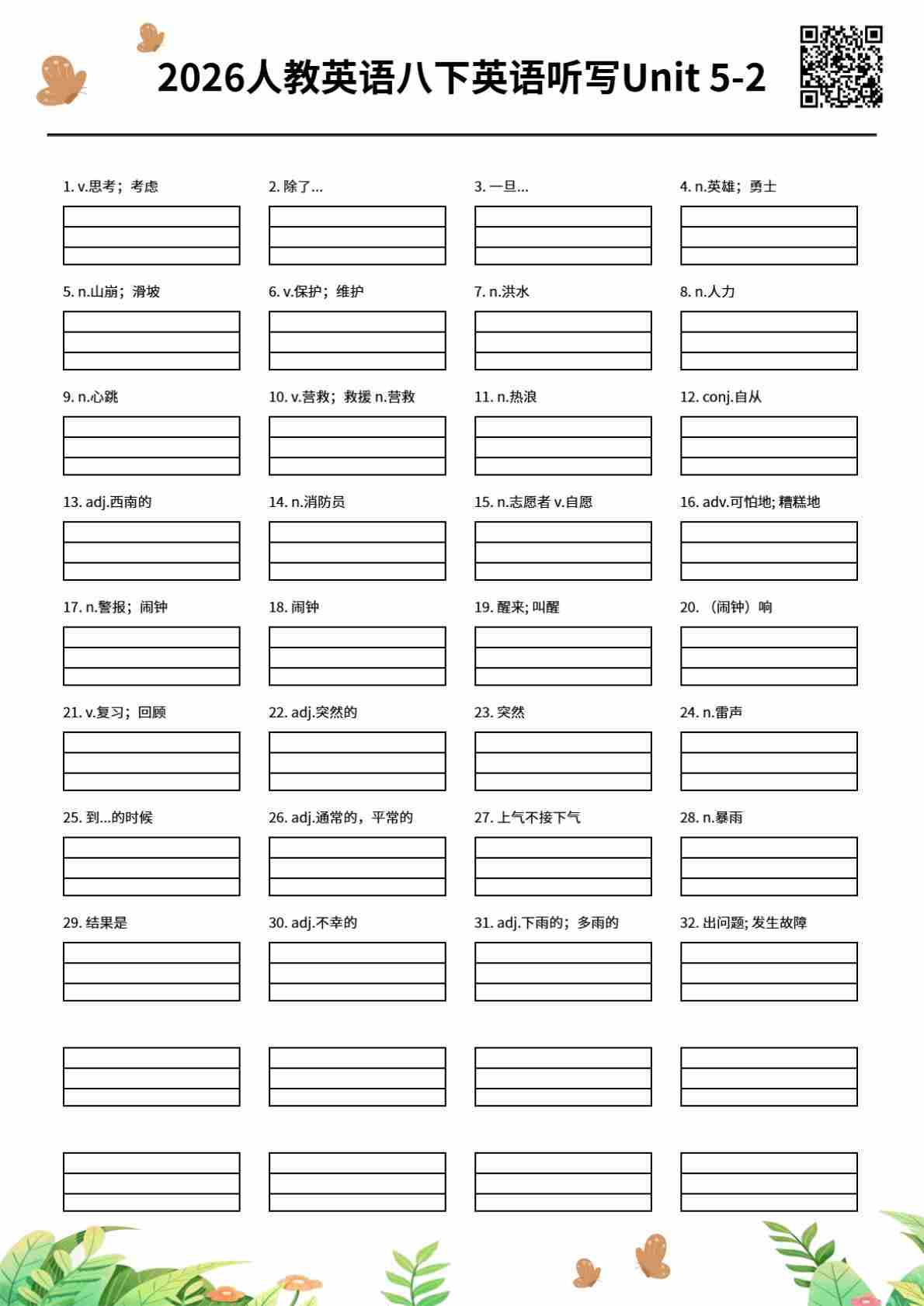 2026人教英语八下英语听写Unit 5-2