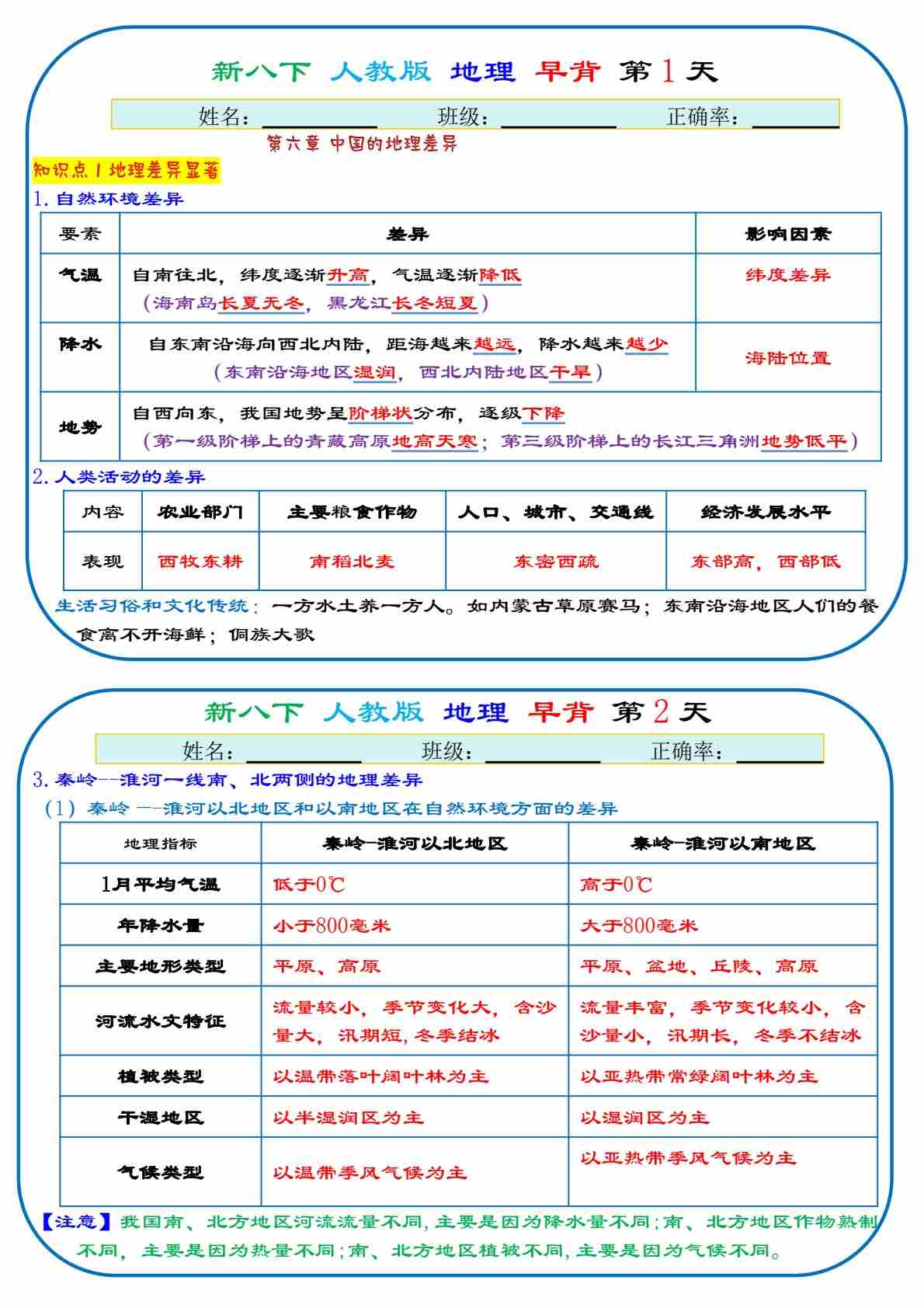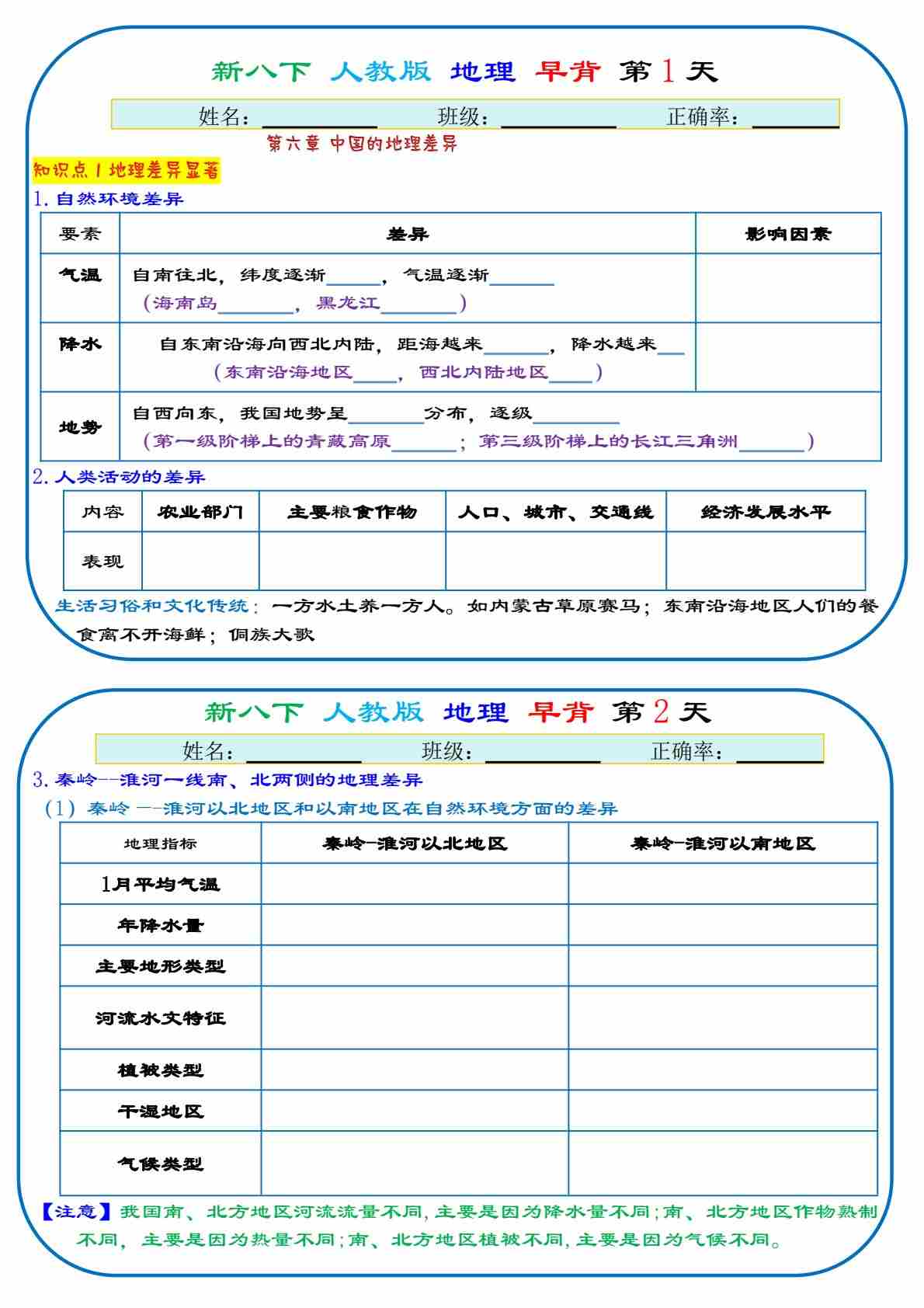 八下地理早背晚默13天