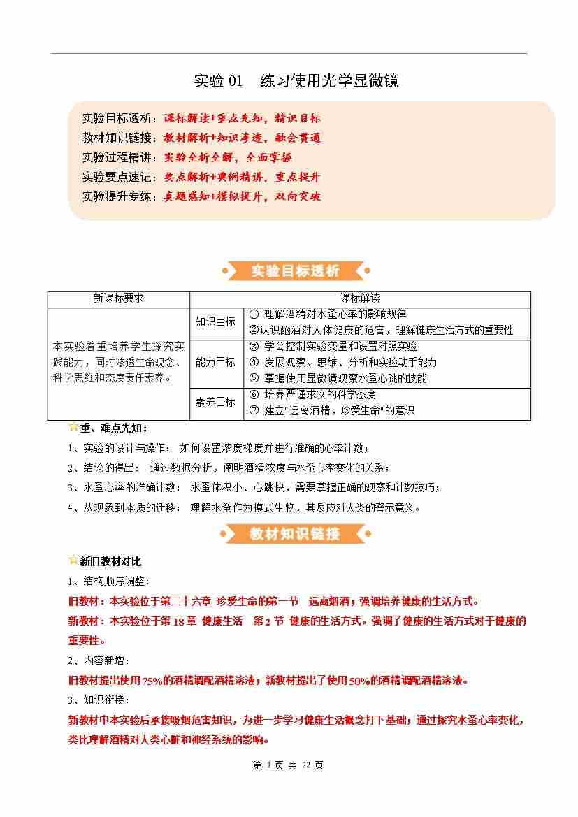 实验01 探究酒精对水蚤心率的影响(讲义)(解析版)