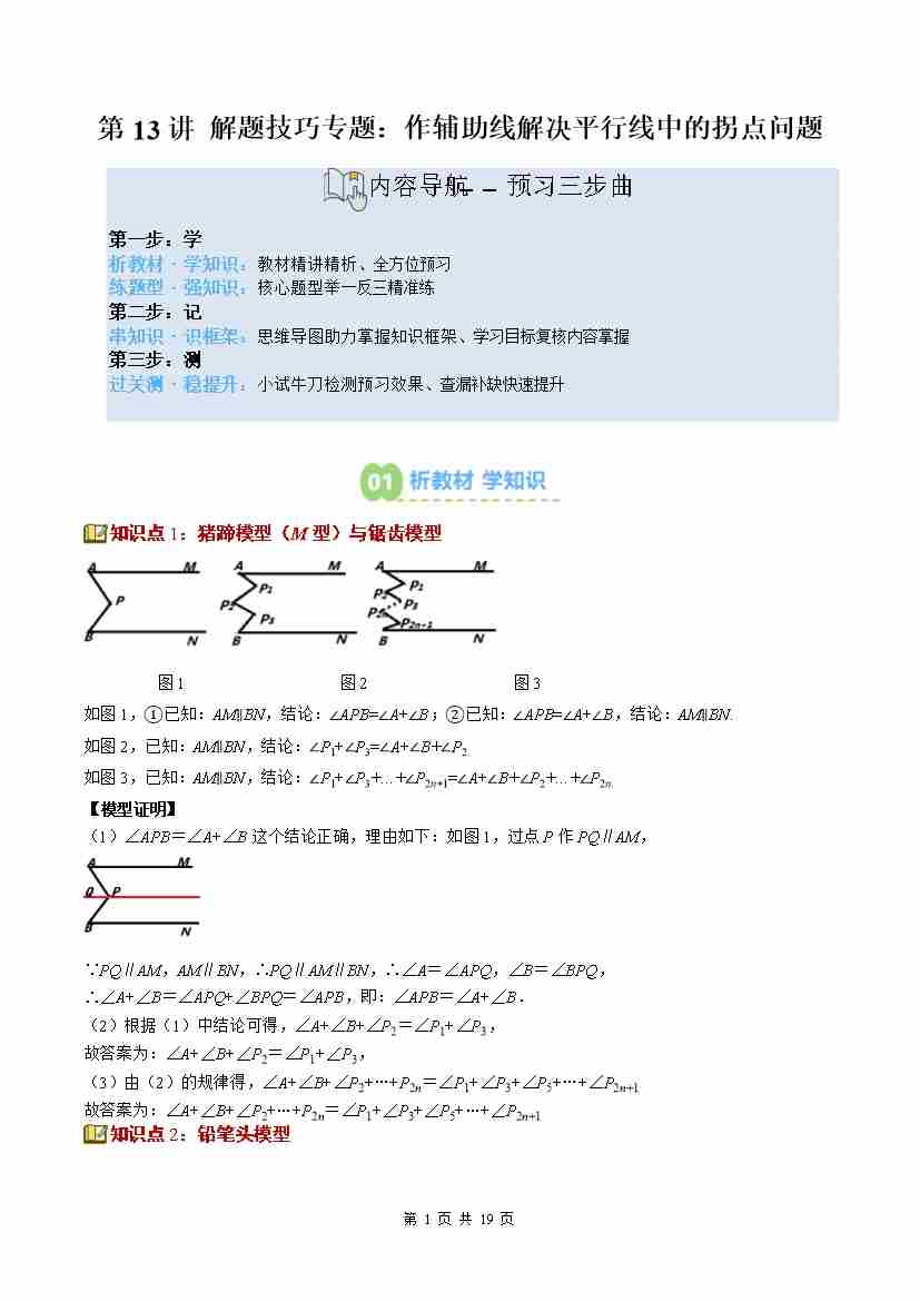 ②寒假预习-第13讲 解题技巧专题:作辅助线解决平行线中的拐点问题(5知识点5大题型过关测)(学生版)-2026年七年级数学寒假衔接讲练 (北师大版-新教材)