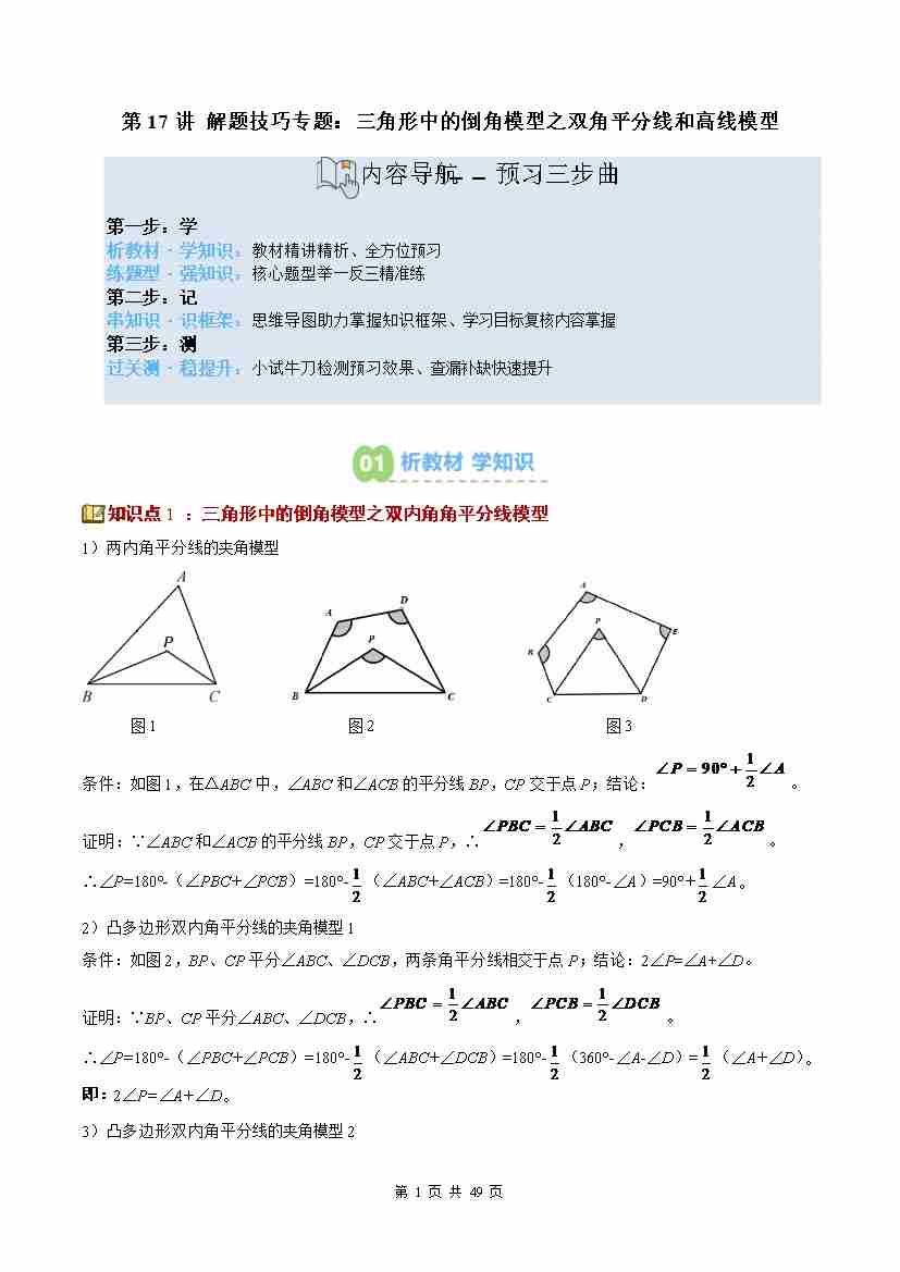 ②寒假预习-第17讲 解题技巧专题:三角形中的倒角模型之双角平分线和高线模型(5知识点9大题型过关测)(学生版) (北师大版-新教材)