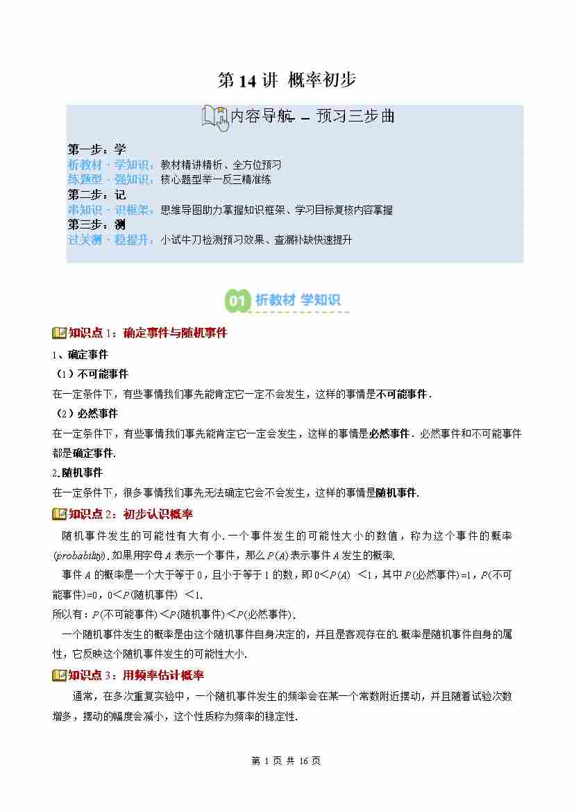 ②寒假预习-第14讲 概率初步(5知识点12大题型过关测)(教师版)-2026年七年级数学寒假衔接讲练 (北师大版-新教材)8