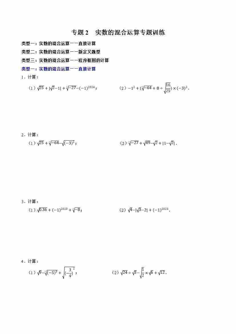 专题2 实数的混合运算专题训练(原卷板)