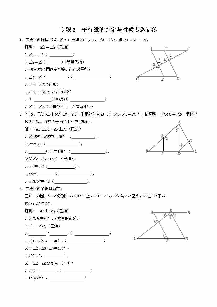 专题2 平行线的判定与性质专题训练(学生板)