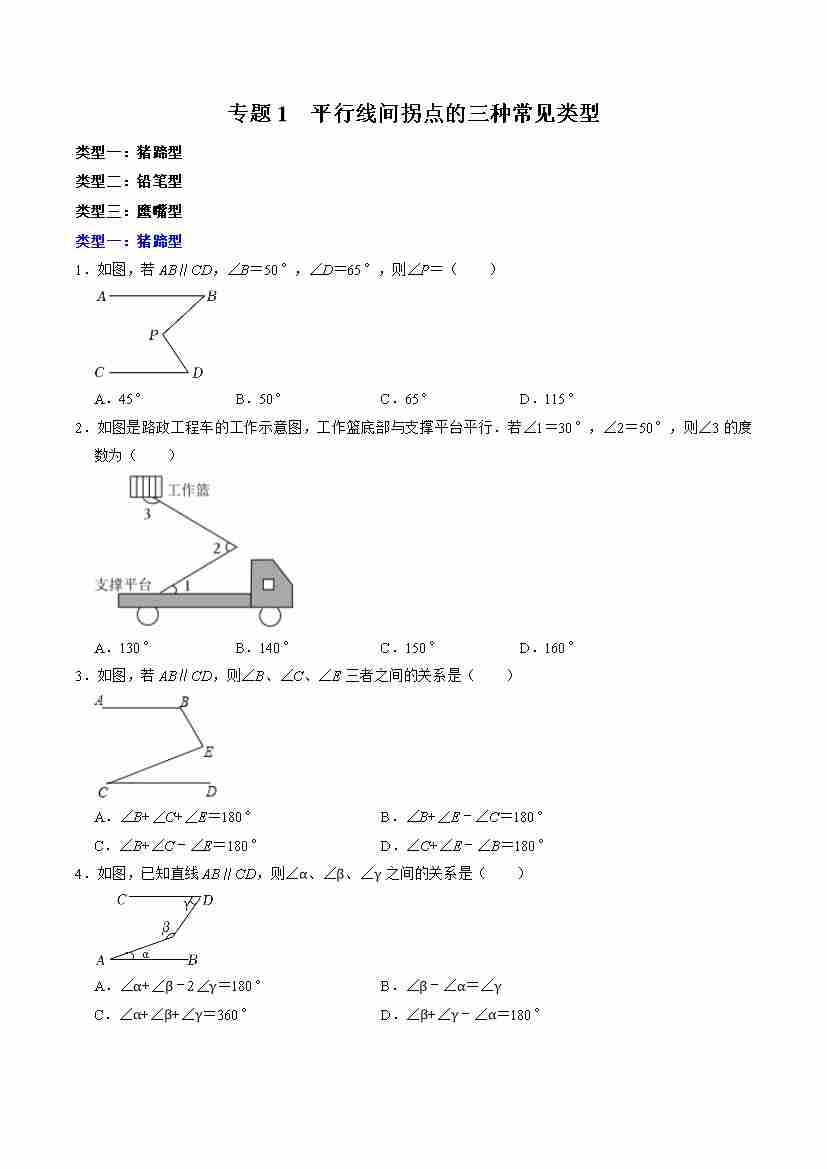 第06讲 平行线的性质(1个知识点5类热点题型讲练习题巩固)(学生板)