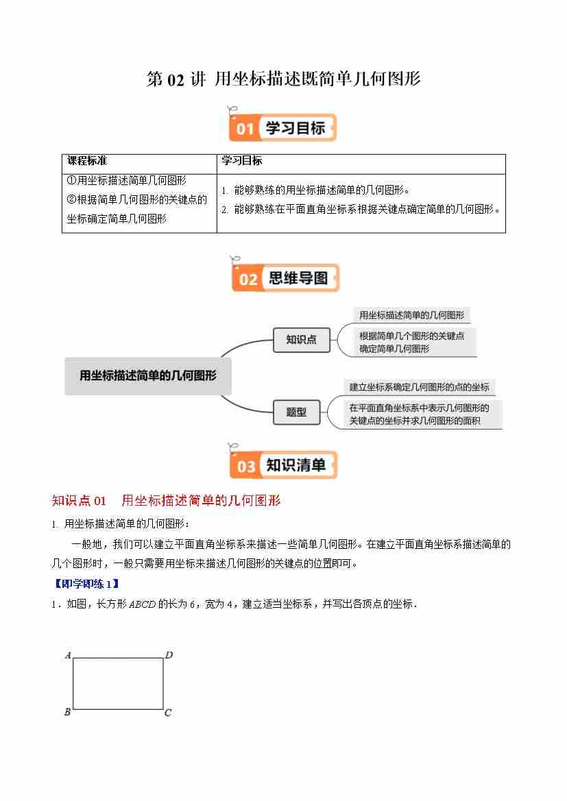 第02讲 用坐标描述简单的几何图形(2个知识点 2类热点题型讲练 习题巩固)(原卷板)
