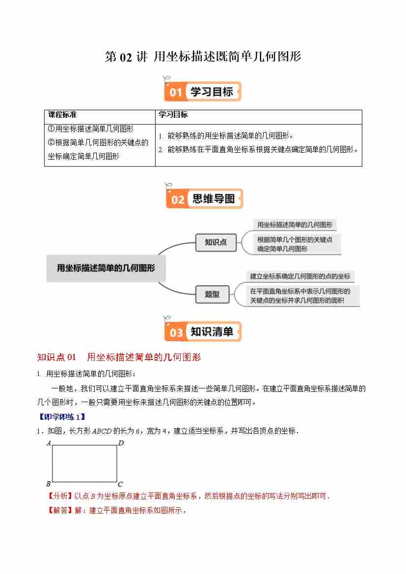 第02讲 用坐标描述简单的几何图形(2个知识点 2类热点题型讲练 习题巩固)(教师版)