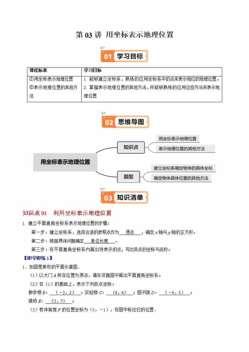 第03讲 用坐标表示地理位置(2个知识点 2类热点题型讲练 习题巩固)(教师版)