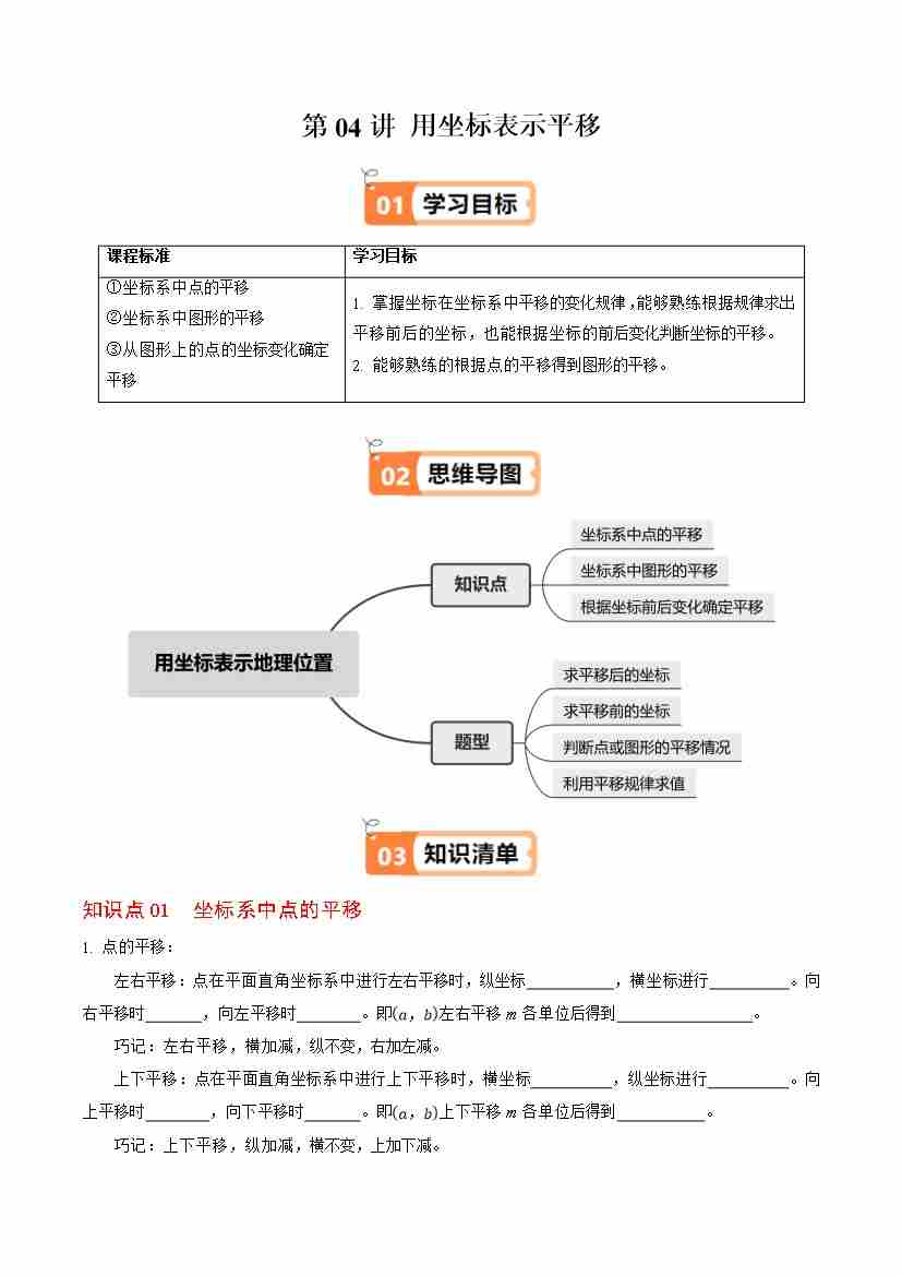 第04讲 用坐标表示平移(3个知识点 4类热点题型讲练 习题巩固)(原卷板)