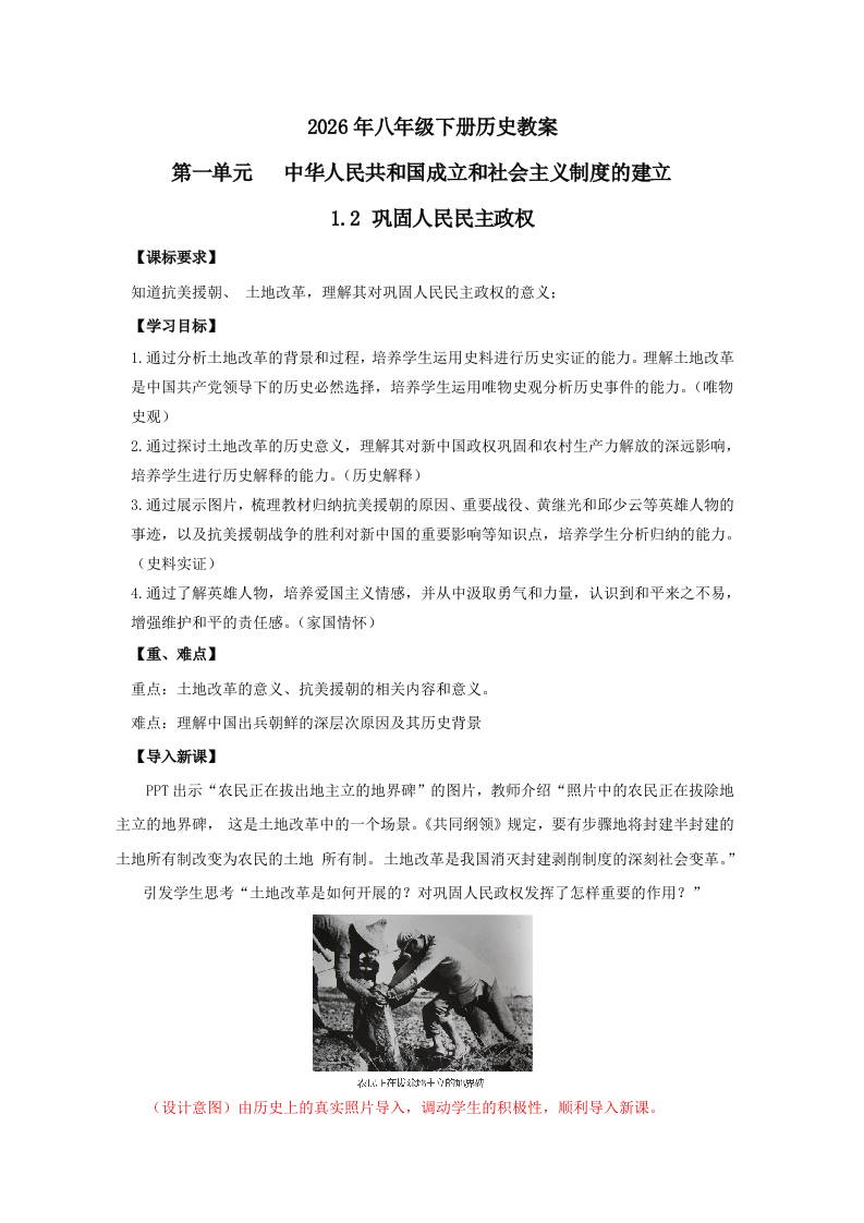 1.2 巩固人民民主政权 教学设计 2025-2026学年统编版八年级历史下学期